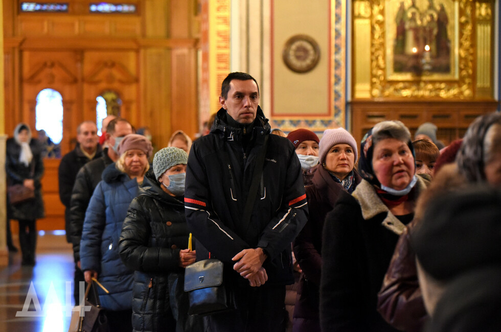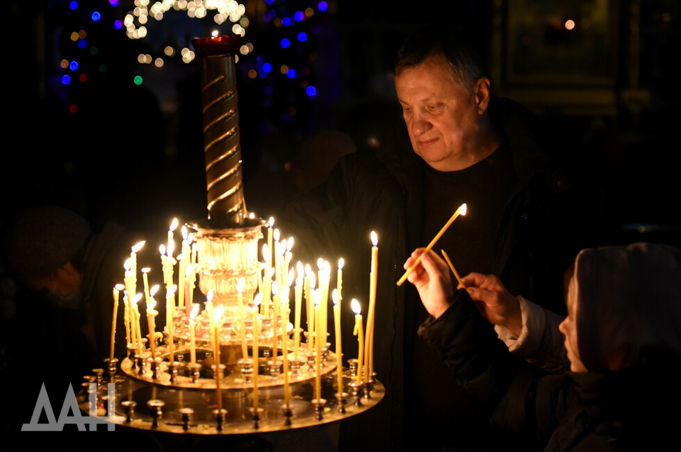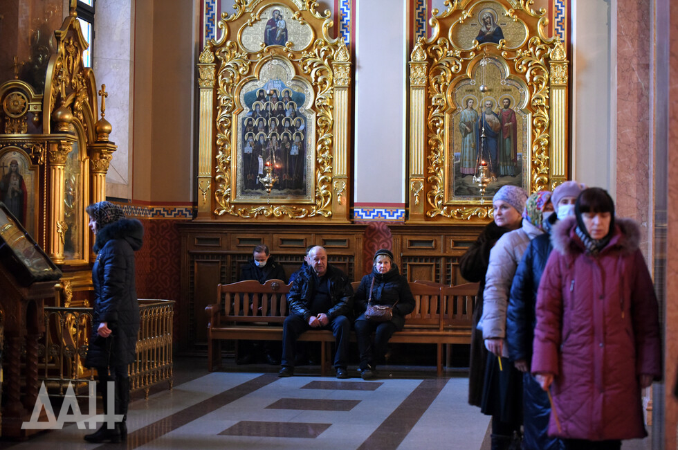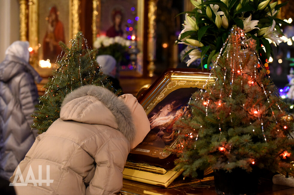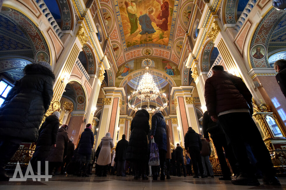 Донецк, 7 янв – корр. ДАН. Рождественское богослужение прошло сегодня в Спасо-Преображенском соборе в центре столицы ДНР. Прихожане поклонялись образам, проходили обряды исповеди и причастия.