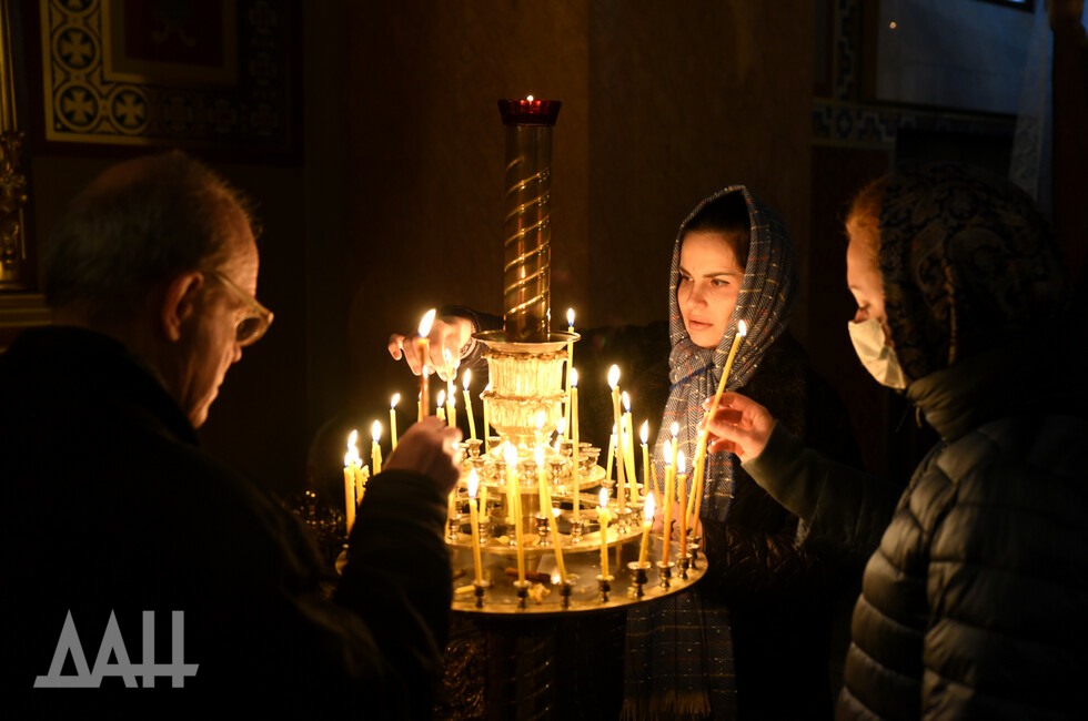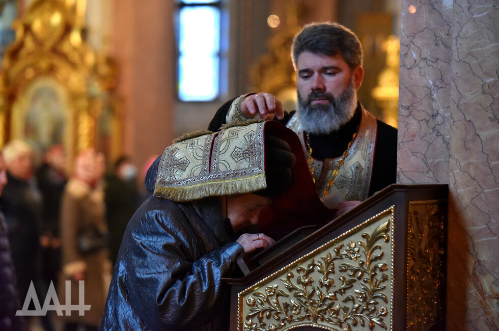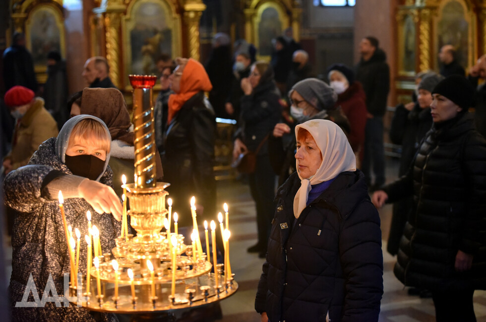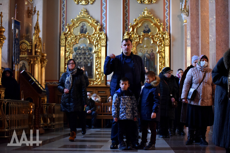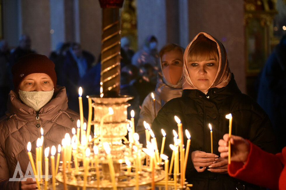 Донецк, 7 янв – корр. ДАН. Рождественское богослужение прошло сегодня в Спасо-Преображенском соборе в центре столицы ДНР. Прихожане поклонялись образам, проходили обряды исповеди и причастия.