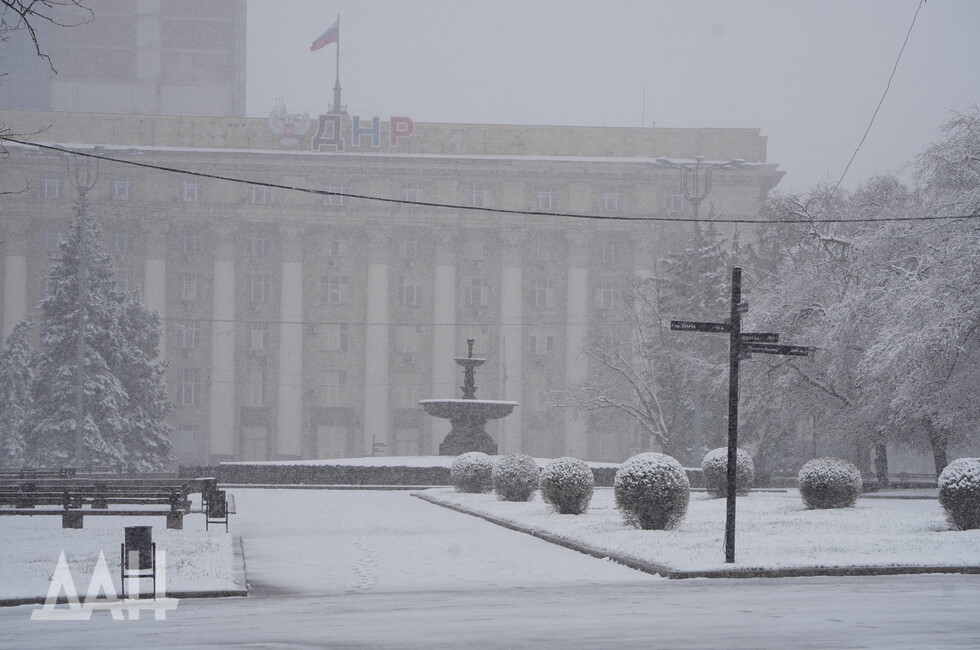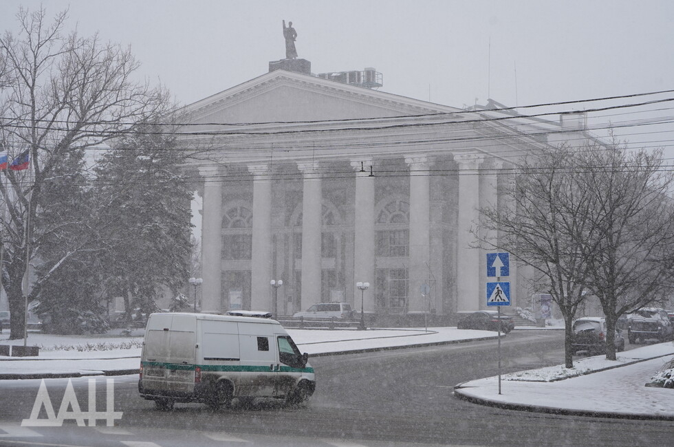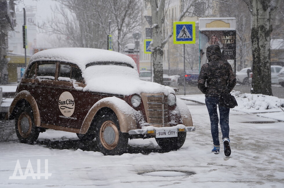 ФОТО: В Донецке несколько часов не прекращается снегопад, что сейчас происходит на улицах