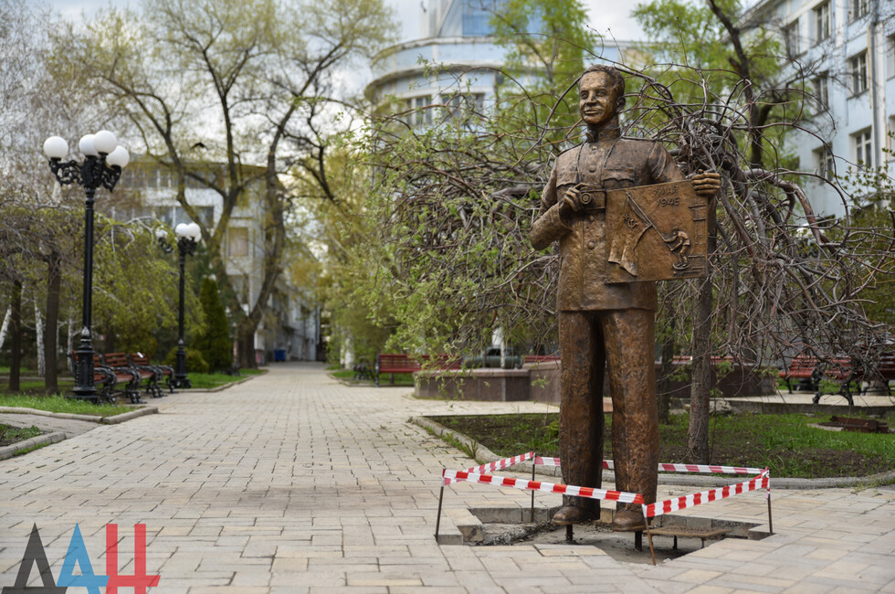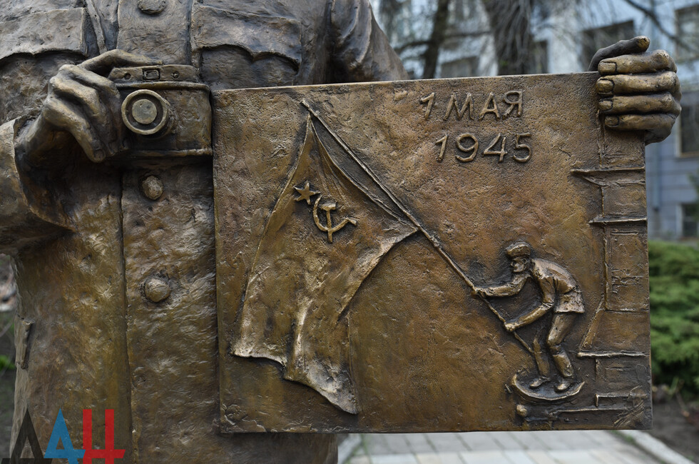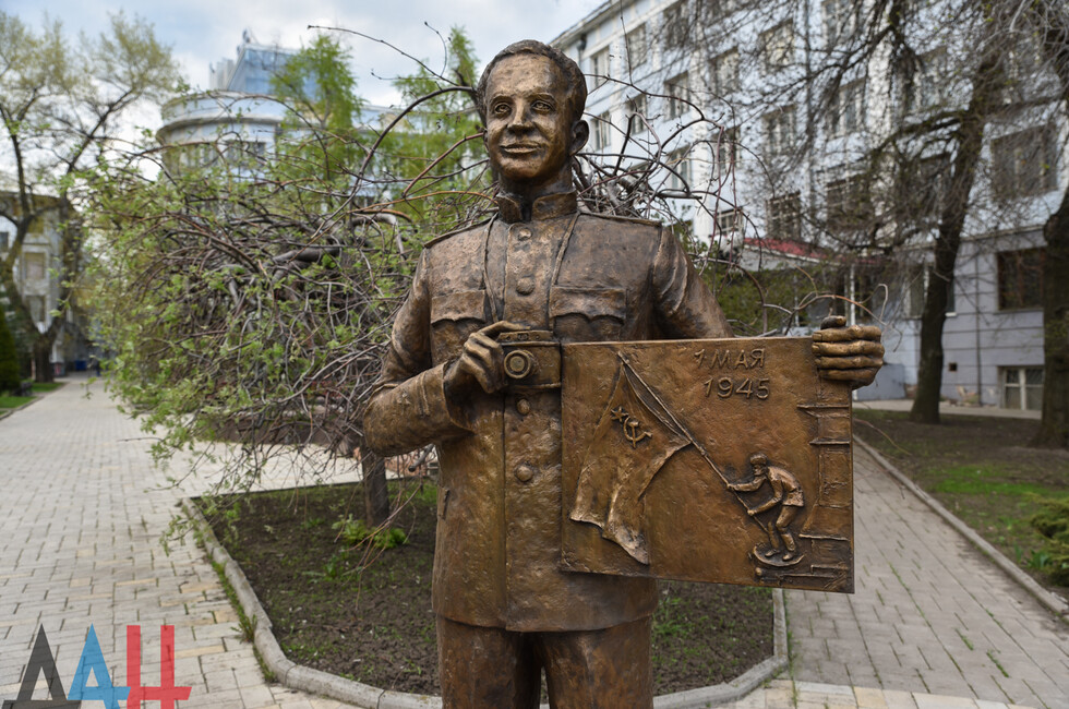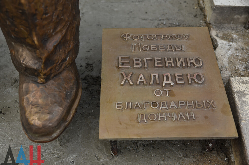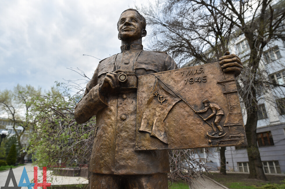 Донецк, 30 апр – корр. ДАН. Памятник известному советскому военному фотокорреспонденту ТАСС, автору легендарного фотоснимка «Знамя Победы над Рейхстагом» дончанину Евгению Халдею был установлен сегодня на пересечении улицы Артема и проспекта Богдана Хмельницкого в центре Донецка. Монумент был сделан ООО «ДМЗ».
