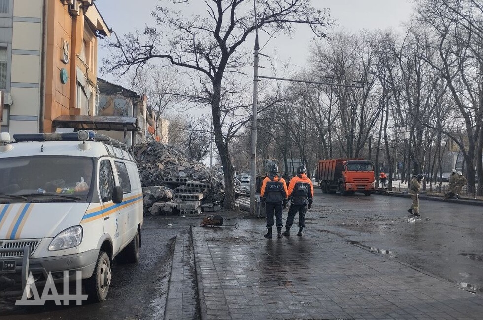 Донецк, 17 янв — ДАН. Сотрудники МЧС ДНР уже более суток в беспрерывном режиме разбирают завалы торгово-офисного здания в Калининском районе столицы, которое было разрушено огнем ВСУ утром, 16 января. За работами наблюдали корр. Донецкого агентства новостей.