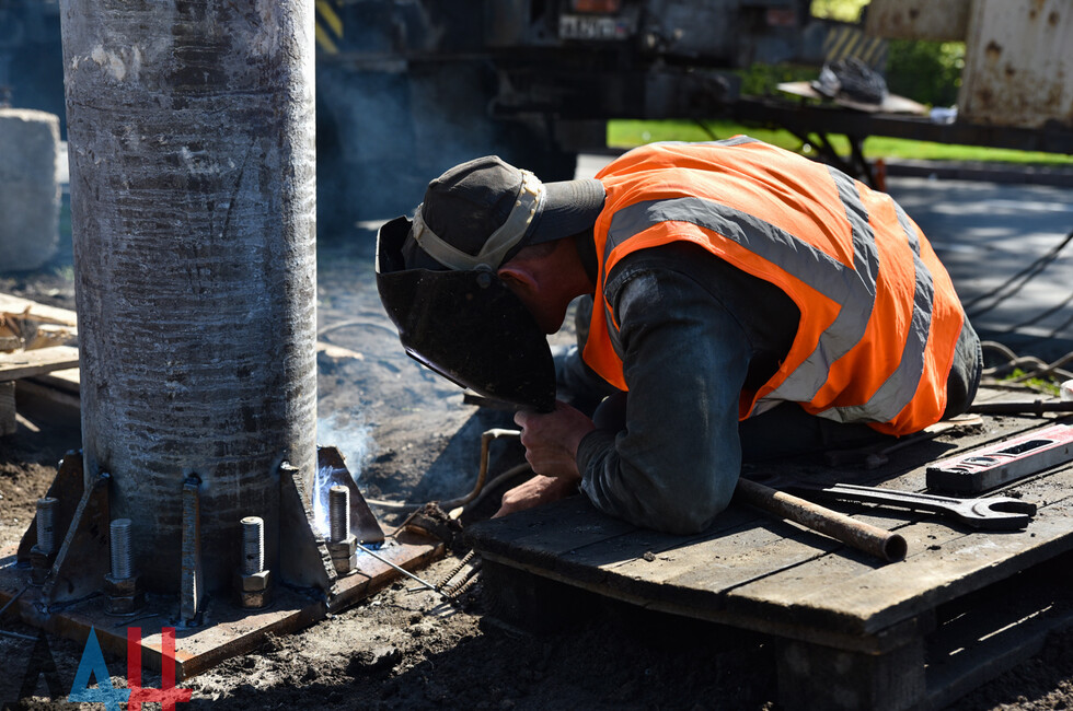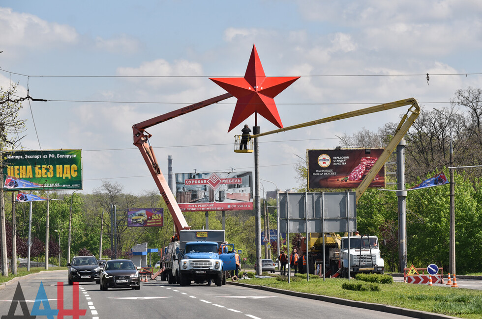 Звезда на шпиле высотой около 10 метров установлена в районе автостанции "Мотель" на разделительной полосе вдоль Макеевского шоссе. С самого утра ее монтировали сотрудники КП "Дорожное ремонтно-строительное управление".