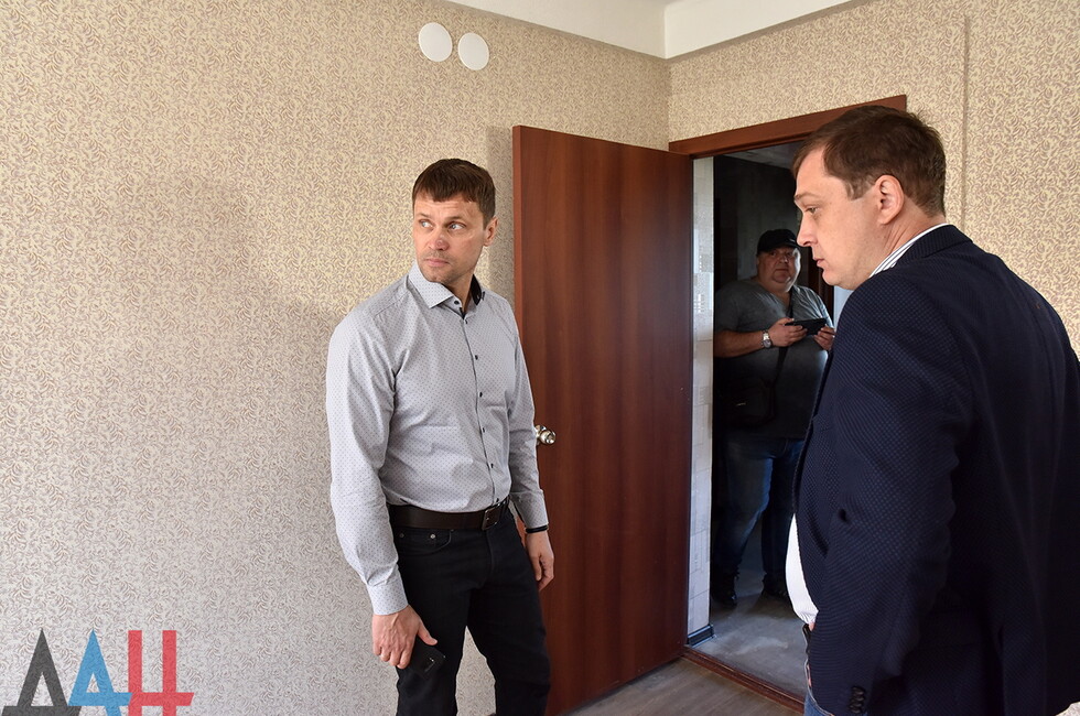 Донецк, 20 мая – корр. ДАН. Министр строительства и жилищно-коммунального хозяйства ДНР Сергей Наумец проверил ход работ по восстановлению двух жилых домов в прифронтовом поселке Октябрьский Куйбышевского района Донецка. Оба объекта были повреждены в результате военной агрессии Украины.
