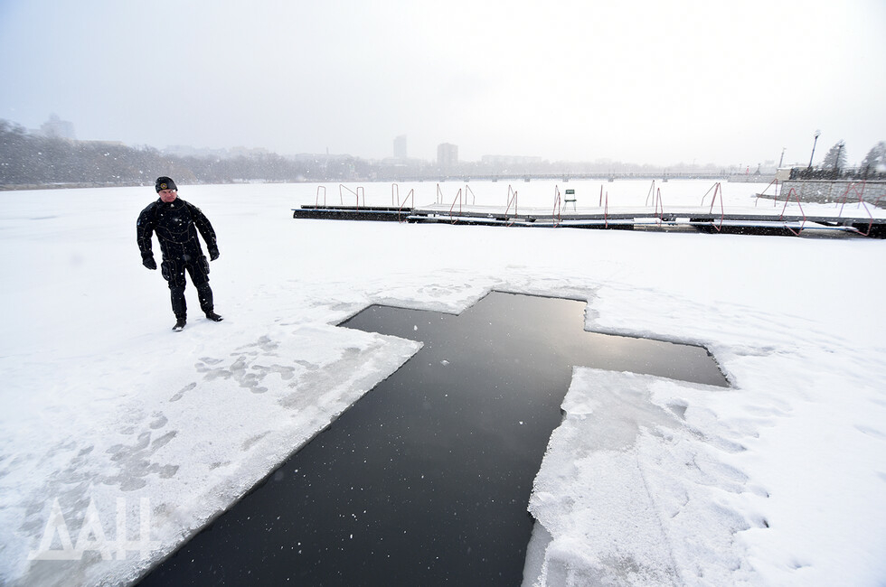 Корреспонденты ДАН побывали на первом и втором прудах в центре города – в парке Щербакова и около университетских общежитий ДонНУ соответственно. Погода выдалась снежная и морозная, поэтому у заблаговременно оборудованных мест для купания сотрудники МЧС разбили палатки, где можно переодеться и согреться. За безопасностью также следят медики и полиция.