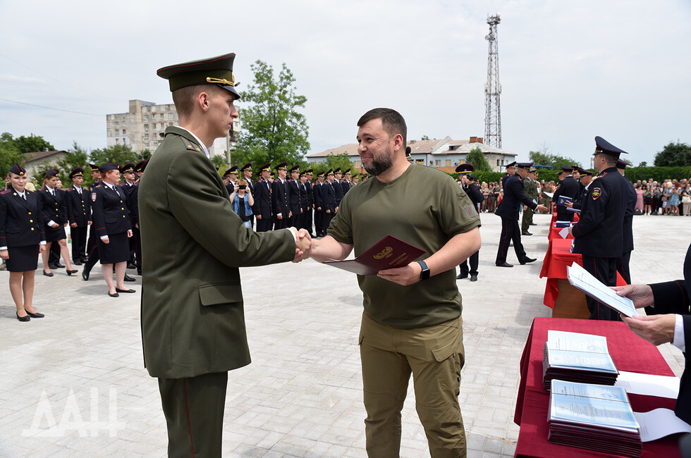 «Вы прошли героические испытания, и так сложилось, что ваш выпускной год совпал с проведением освободительной операции. Вы на деле показали, чему научились за эти годы. Сегодня вы получаете документы о высшем образовании в Мариуполе — городе, который был освобожден, в том числе и благодаря лично вам. Война расставила все на свои места, обнажила истинный смысл таких понятий, как Родина, честь, совесть, — заявил в своем торжественном обращении к выпускникам Глава ДНР Денис Пушилин. — В добрый путь, товарищи офицеры, и желаю вам всем скорейшей победы!»