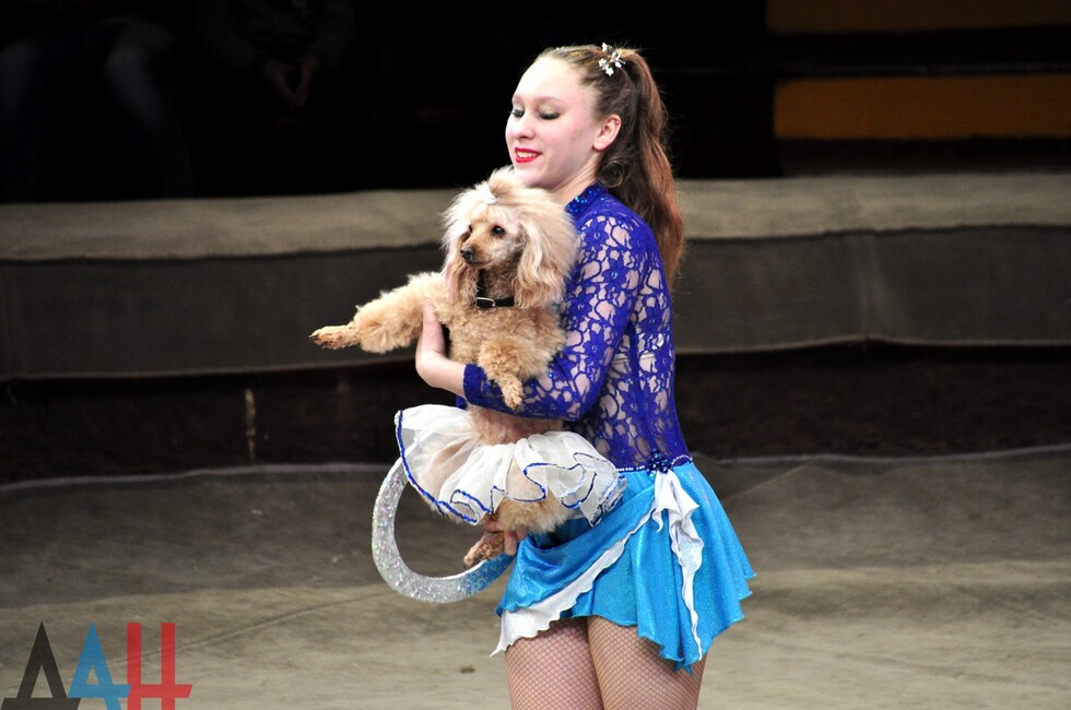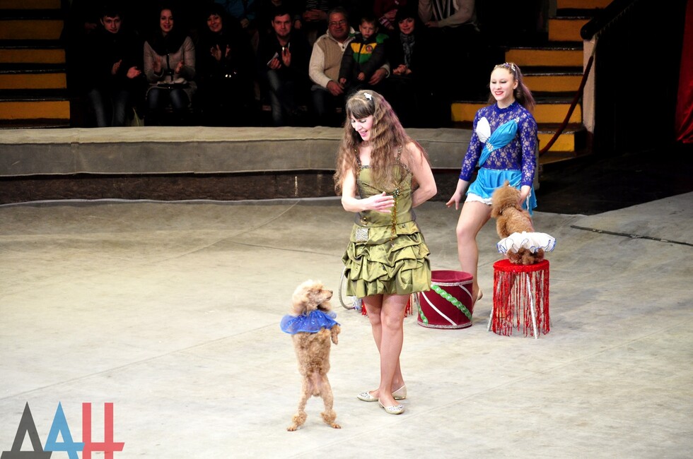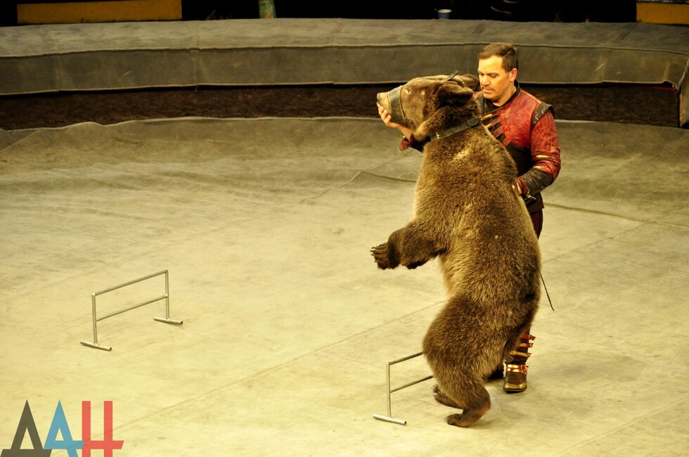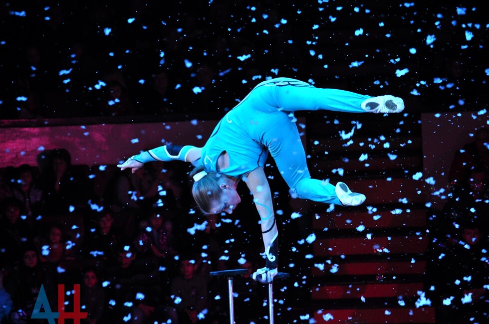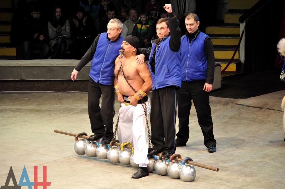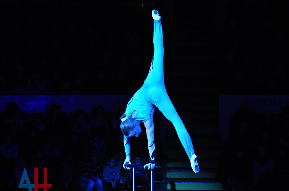Завершающая новогодняя программа «Росгосцирка» продлилась более двух часов, и включала в себя выступления акробатов, клоунов, дрессировщиков животных - собак, медведей и даже быков. За время гастролей (начались 27 декабря) российские артисты выступили на донецкой арене более 10 раз. *дя*рб*ъъ