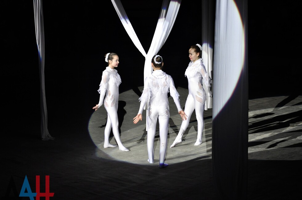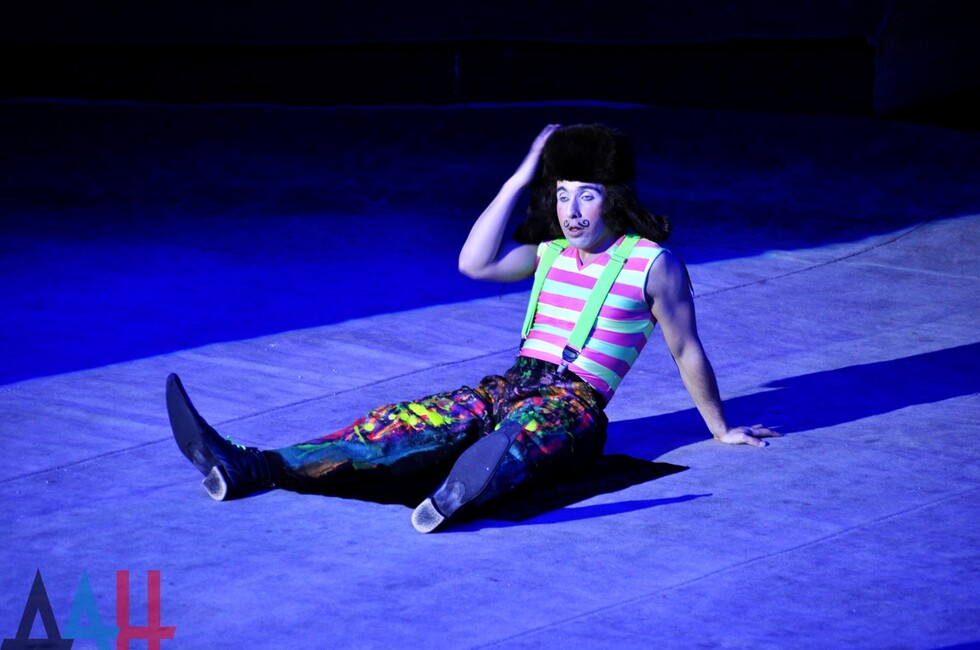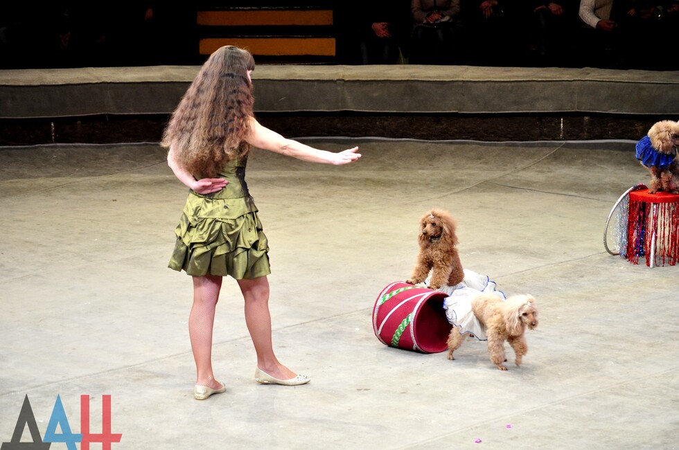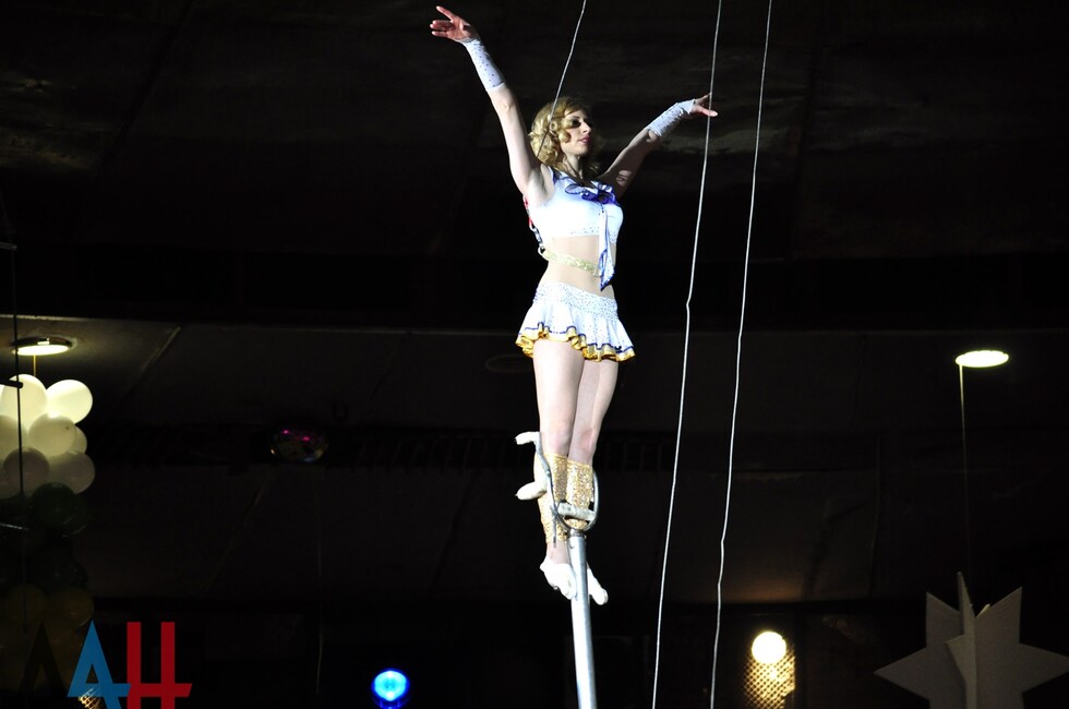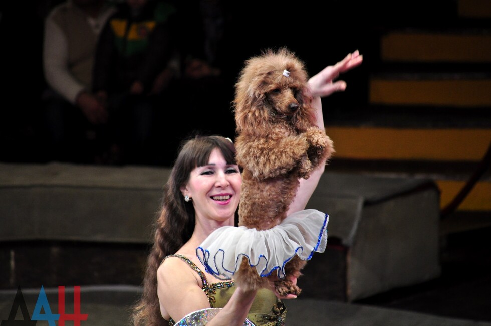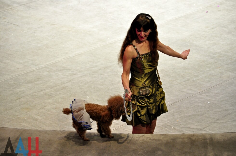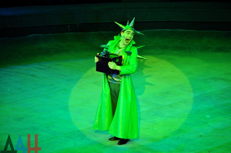 Завершающая новогодняя программа «Росгосцирка» продлилась более двух часов, и включала в себя выступления акробатов, клоунов, дрессировщиков животных - собак, медведей и даже быков. За время гастролей (начались 27 декабря) российские артисты выступили на донецкой арене более 10 раз. *дя*рб*ъъ