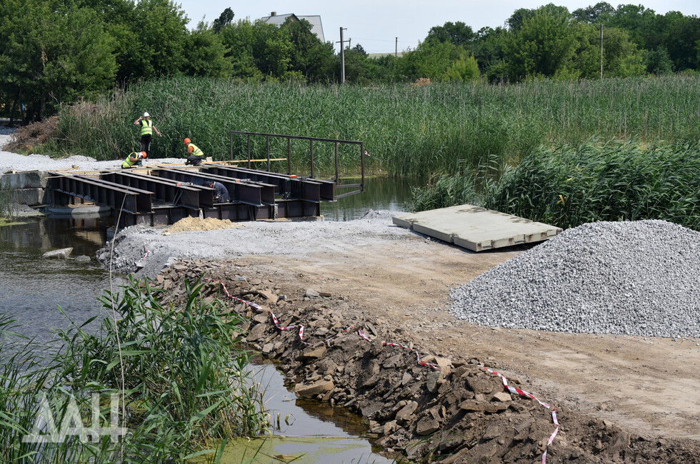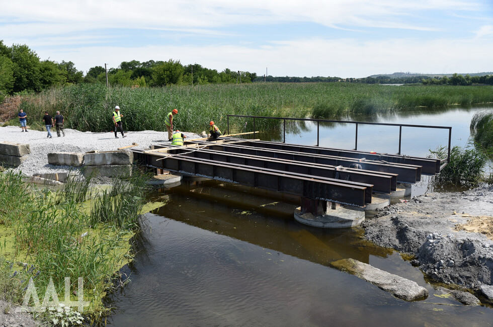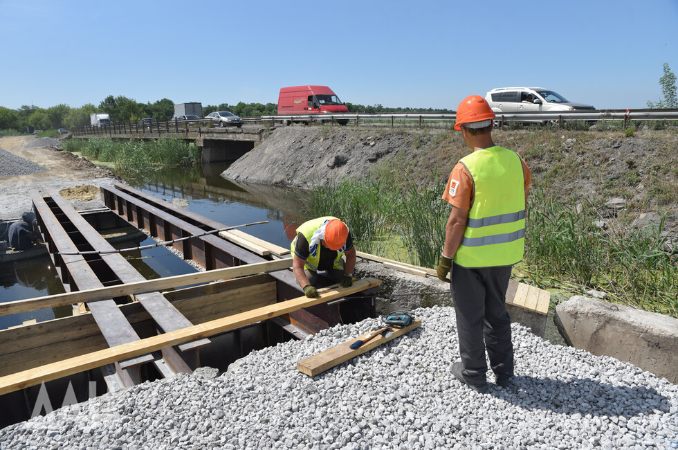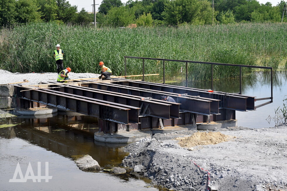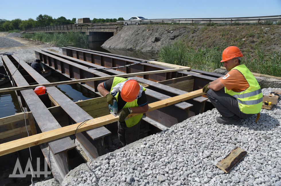 Новая реконструкция предполагает полноценное восстановление как моста, так и подачу воды в водохранилище. Чтобы не создавать помех транспорту, 10 июля будет сдан временный переход, сейчас его активно возводят российские специалисты.