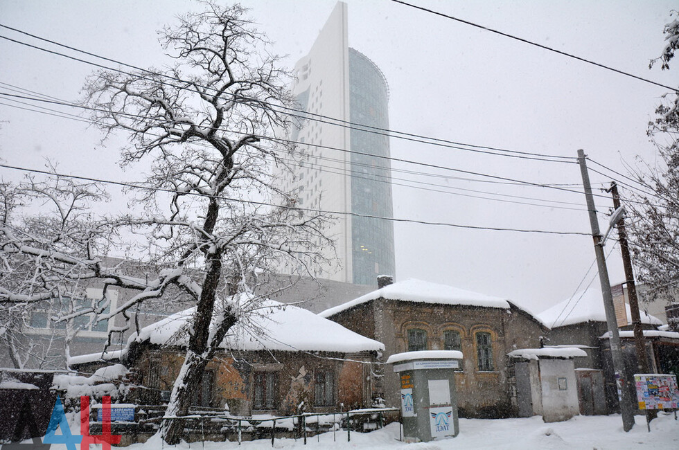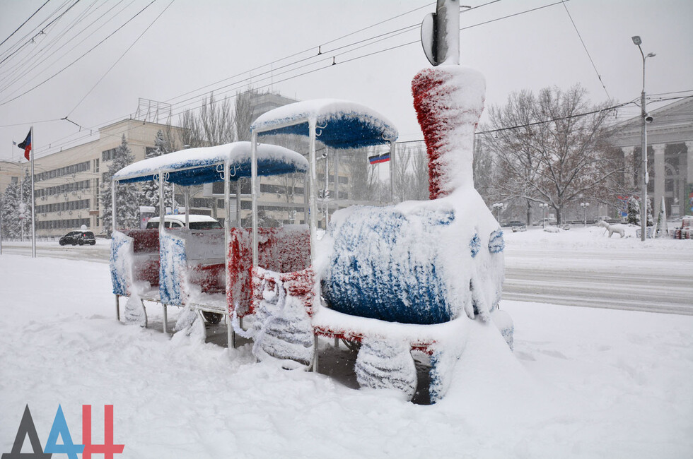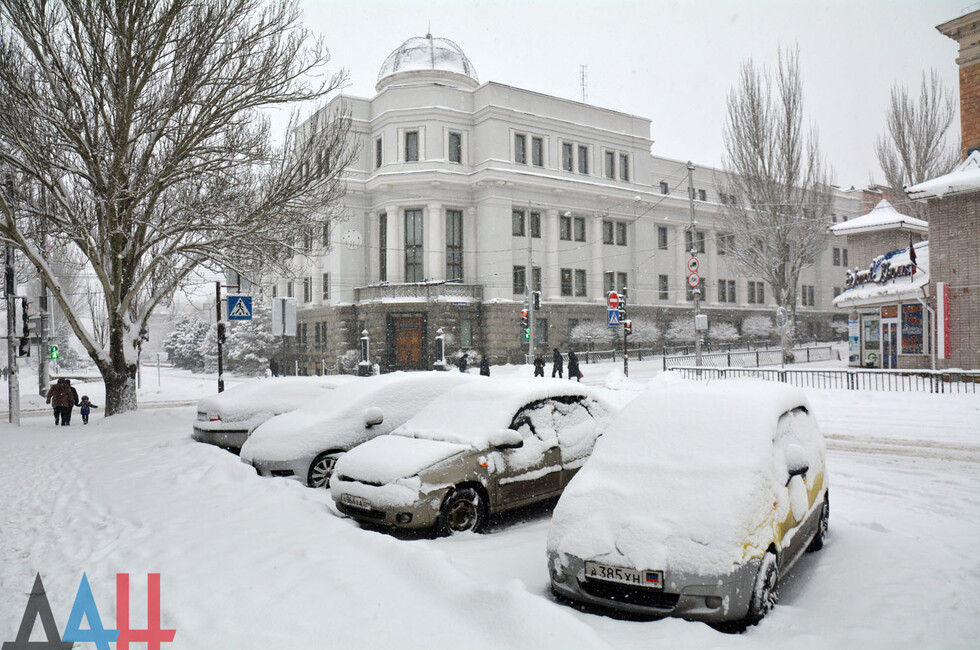 Фоторепортаж: Снегопад укутал Донецк в сугробы