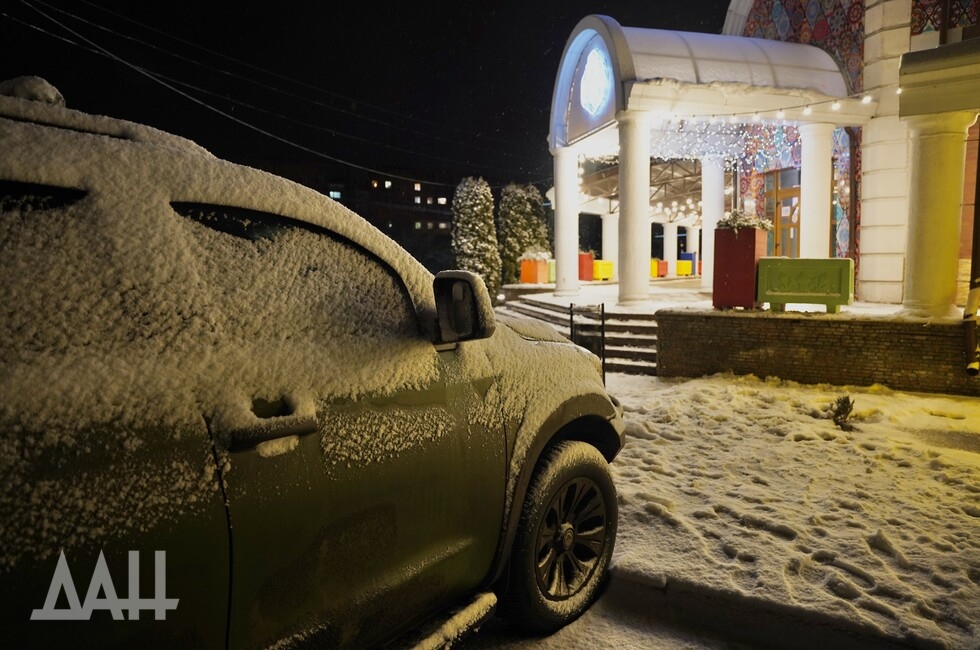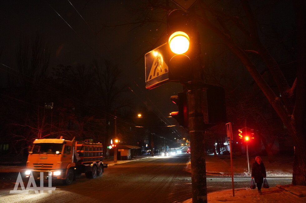 ФОТО: Убирают и посыпают. В ДНР ликвидируют последствия ночного снегопада
