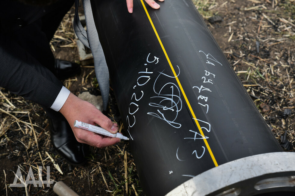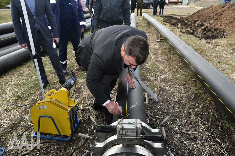 Пушилин приехал проинспектировать ход работ, представители ГК "Донбассгаз" показали ему карту строительства, рассказали об этапах работ. Затем Глава ДНР лично соединил трубы на одном из участков, воспользовавшись аппаратом для стыковой сварки. Затем на одной из труб он сделал надпись: «Да будет газ!», расписался и поставил сегодняшнюю дату.