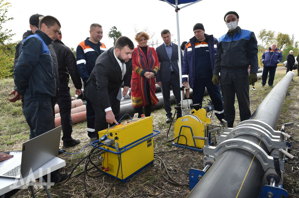 Углегорск, 5 окт – ДАН. Глава ДНР Денис Пушилин сегодня принял участие в пайке труб на одном из участков газопровода Углегорск-Дебальцево, передает корр. ДАН с места события.