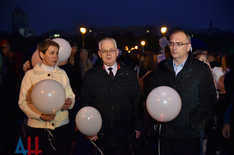 «Даже дождь не помешал сегодня вечером традиционно собраться на мосту в парке Щербакова и выпустить белые шары и горящие фонарики в память о погибших детях Донбасса», - подчеркнул Пушилин.