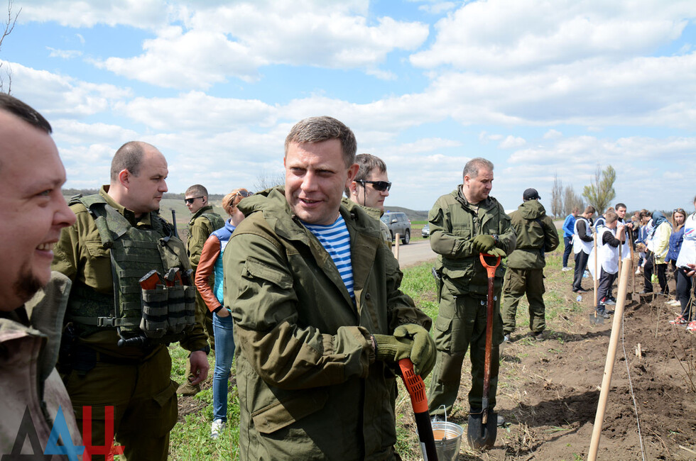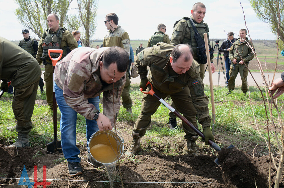 В закладке нового леса принял участие лично Глава ДНР Александр Захарченко. К нему присоединились заместители председателя Совета министров Республики Дмитрий Трапезников и Александр Тимофеев, и.о. главы Старобешевского района Николай Михайлов, и.о. мэра Донецка Алексей Кулемзин и другие жители.