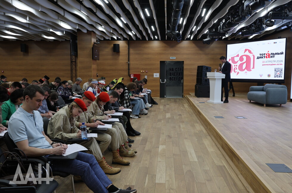 Донецк, 18 апр — ДАН. Тотальный диктант объединил в Донецке молодежь, общественников и всех любителей русского языка за проверкой грамотности. На площадке побывал и корреспондент Донецкого агентства новостей.