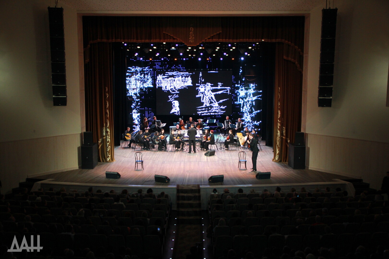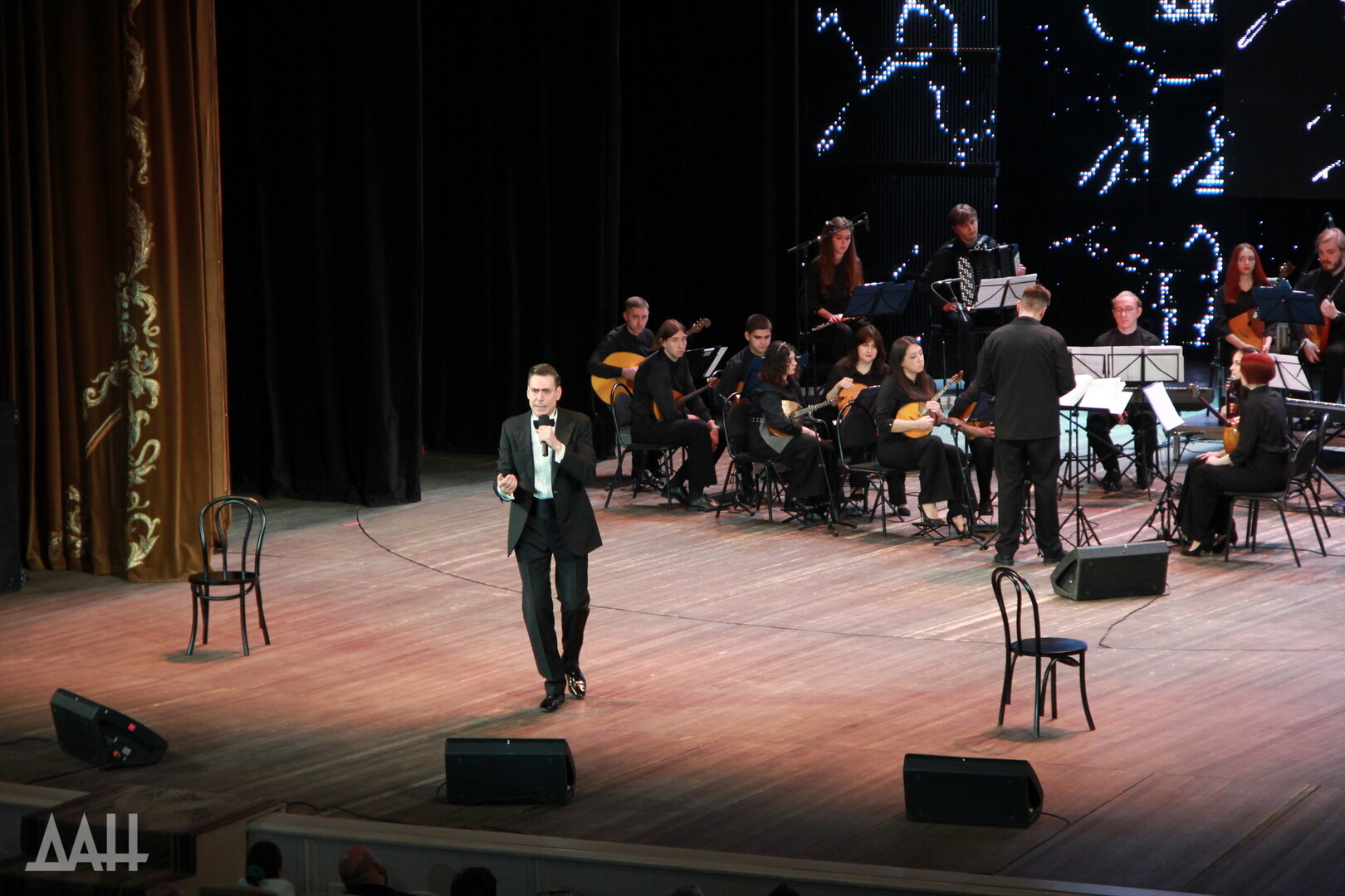 Донецк, 17 апр — ДАН. Концерт «Евгений Онегин» с участием заслуженного артиста России Дмитрия Дюжева прошел в Центре славянской культуры в Донецке. Артист читал главы из романа Александра Пушкина под музыку Сергея Прокофьева в сопровождении молодежного оркестра народных инструментов Донецкой государственной академической филармонии. На мероприятии побывал и корр. Донецкого агентства новостей.