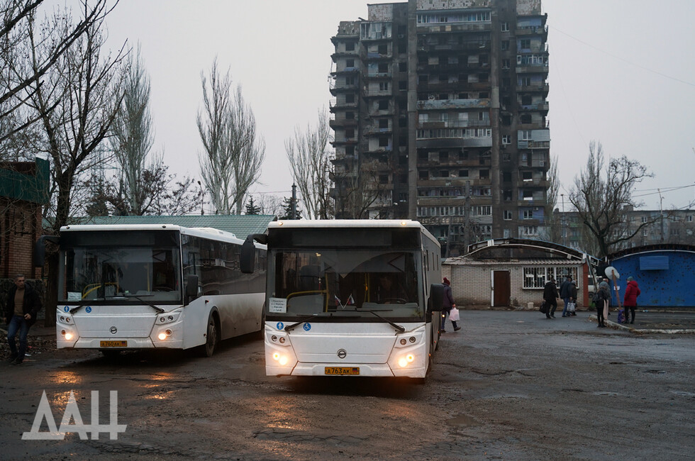 Сейчас в городе разветвленная сеть автобусных маршрутов: 20 городских и 7 пригородных. Для сравнения в середине лета работало 16 городских маршрутов, на которых курсировало 40 автобусов. С первых дней освобождения проезд по городу бесплатный. С ноября начал ездить автобус до Новоазовска, цена билета — 80 рублей.