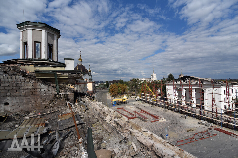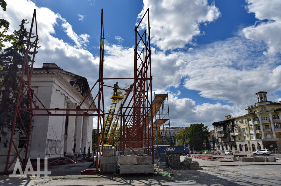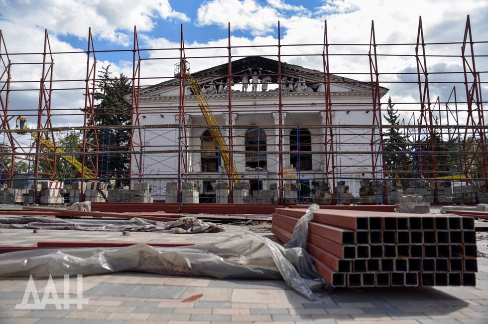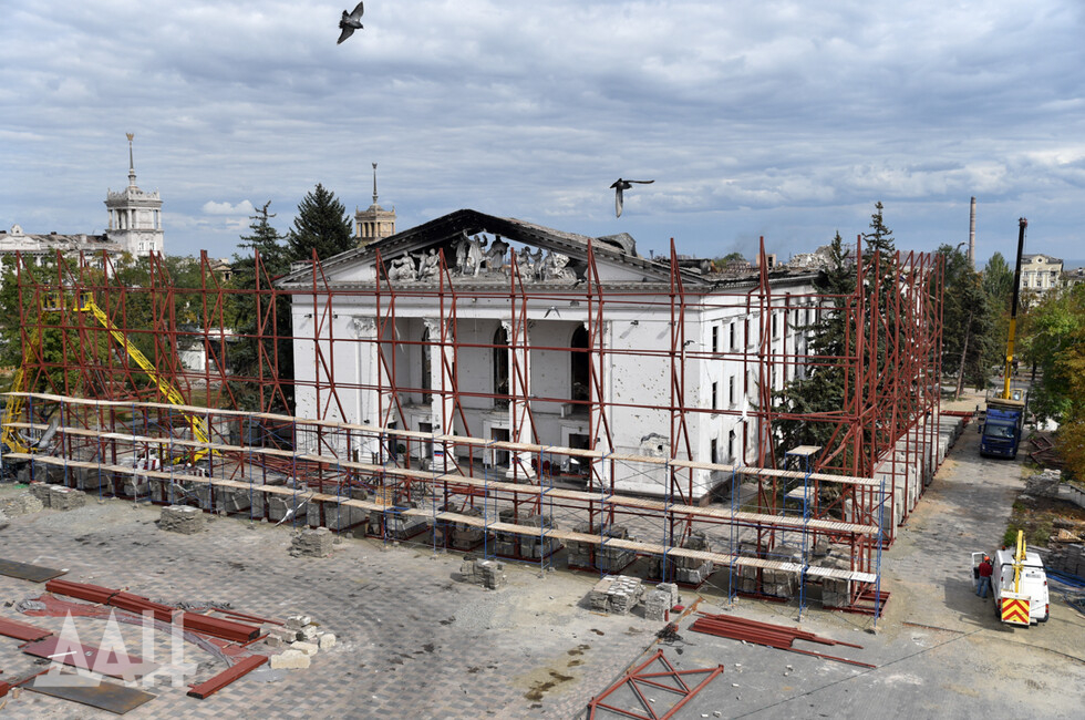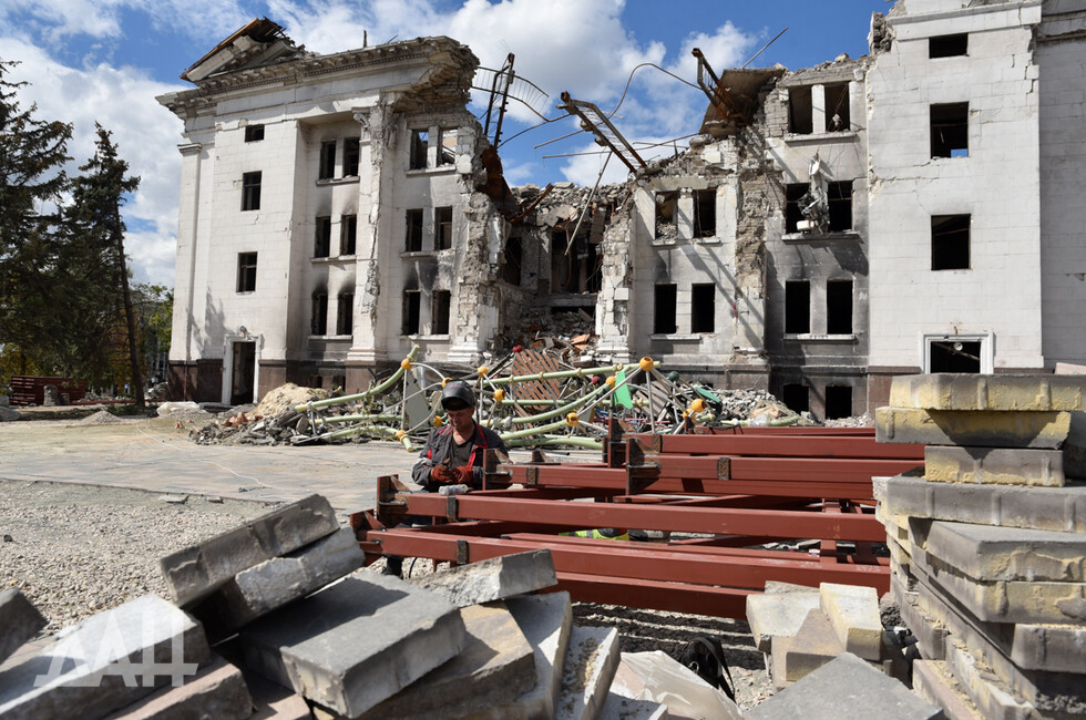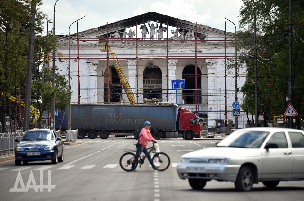 Мариуполь, 7 сен — корр. ДАН. Донецкий академический областной драматический театр в городе Мариуполе будет закрыт стальными щитами и металлоконструкциями для проведения восстановительных работ. Сотрудники российской строительной компании рассказали, что облик одного из основных культурных центров города будет изменен, однако отдельные архитектурные элементы здания сохранятся.