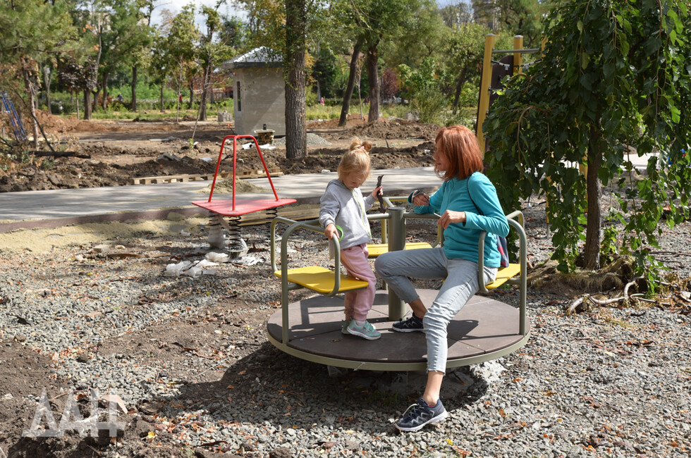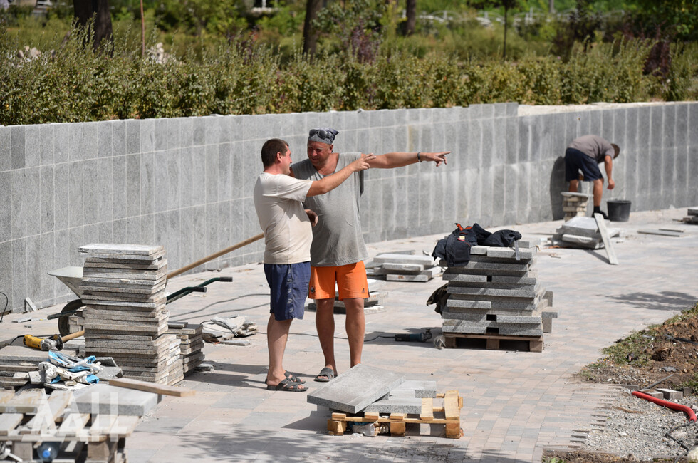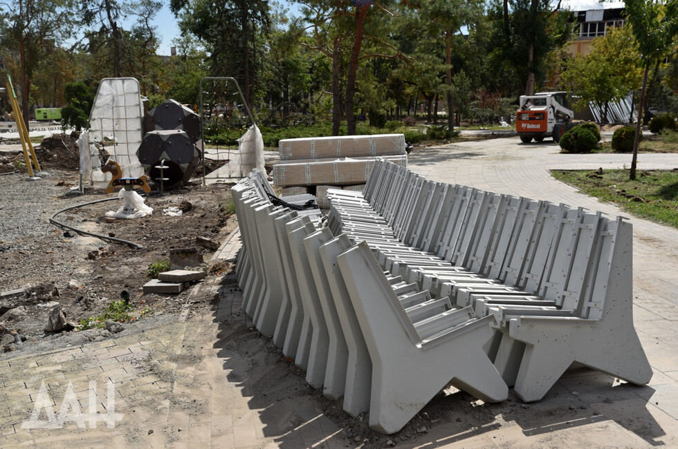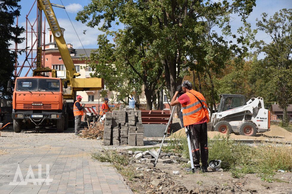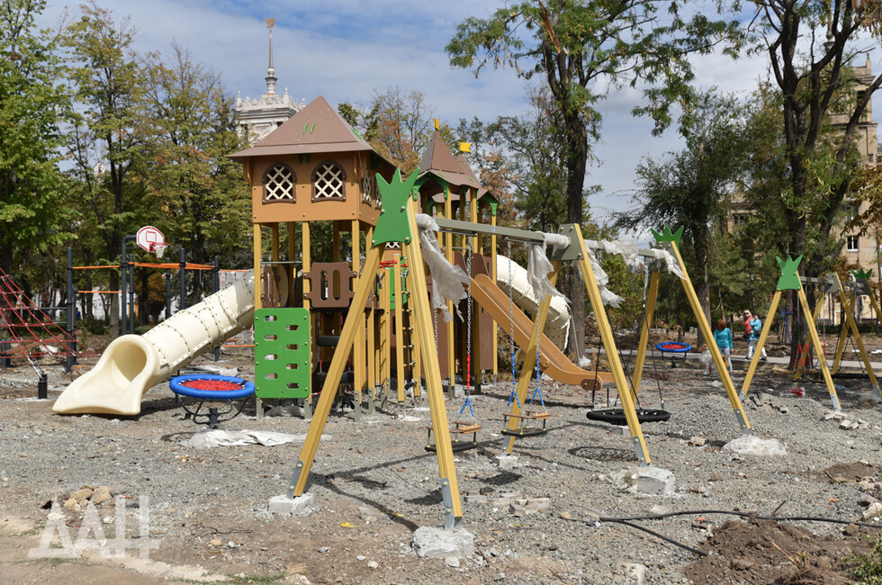 Стоит отметить, что на стройплощадке много техники, и работа идет высокими темпами. Также ведется полная реконструкция прилегающей парковой зоны. Восстанавливается в первозданном виде — еще по советскому проекту — фонтан у драмтеатра. Меняется ландшафтный дизайн. Уже установлены новые детские площадки.