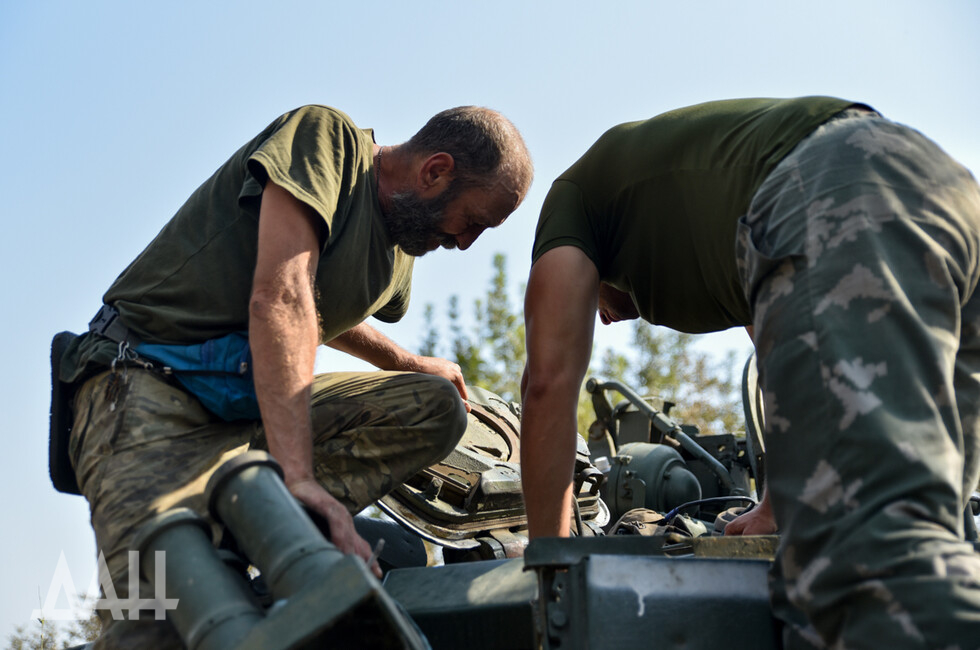 «Мы проводим учения своего подразделения совместно с более опытными танкистами одного из „профильных“ батальонов Народной милиции. Мы все же привыкли стрелять прямой наводкой, а инструкторы учат нас использовать все свойства мощной 125-мм пушки», — говорит боец.