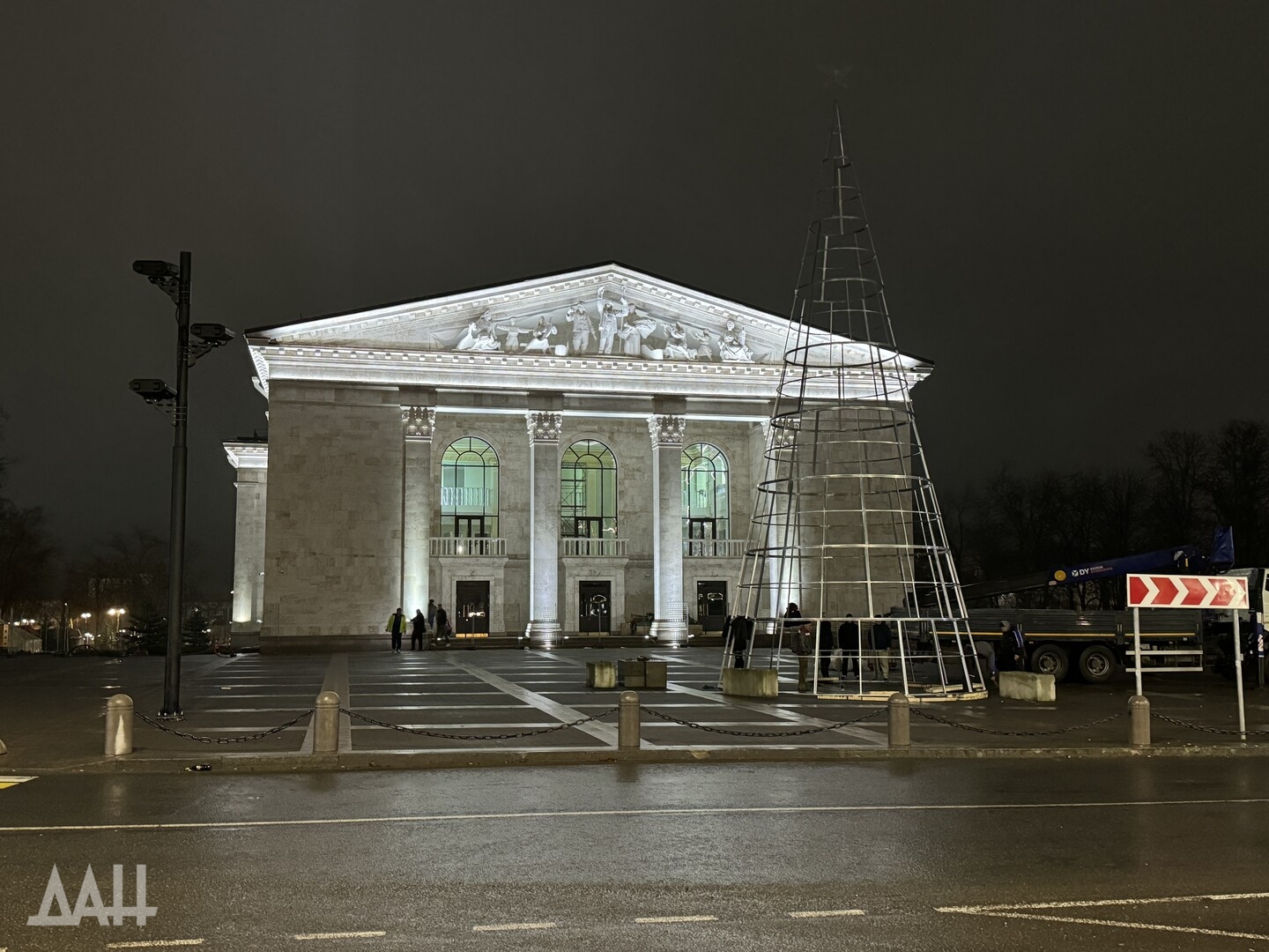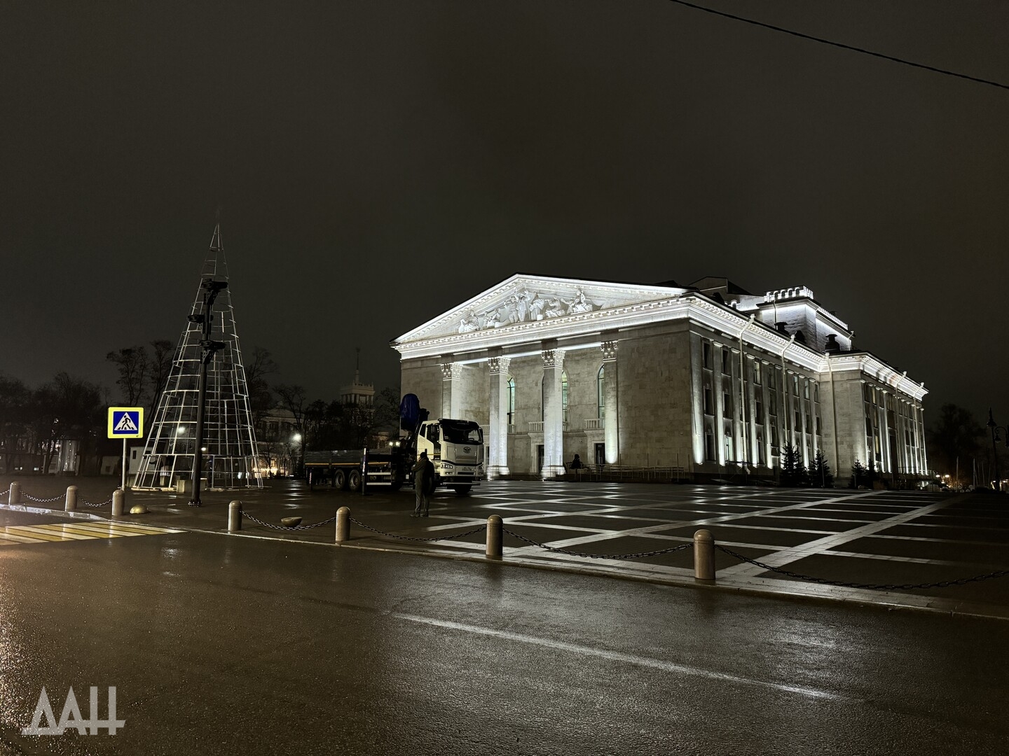 «У нас выполнена полностью архитектурная подсветка здания. Самым сложным было программирование, проблем с монтажом не было никаких. Подсветка имеет несколько оттенков. Также мы сегодня приступили к монтажу новогодней ёлки Театральной площади, через пару дней она будет полностью уде наряжена, в игрушках. Создаем новогоднее настроение», — отметил Новохатко.