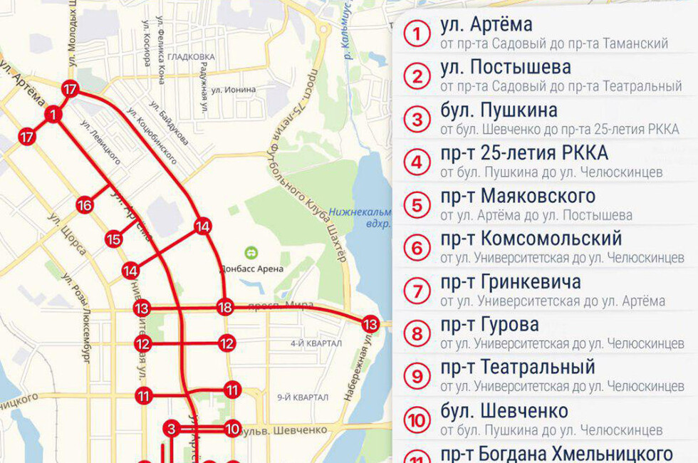 По данным МВД, с 05:00 до 15:00 в центральной части столицы будет прекращено движение всех видов транспорта, в том числе муниципального. В частности, ограничения будут действовать по улицам Артема, Челюскинцев, Постышева, бульварам Пушкина и Шевченко и целому ряду проспектов (см. графику). *ха*мк