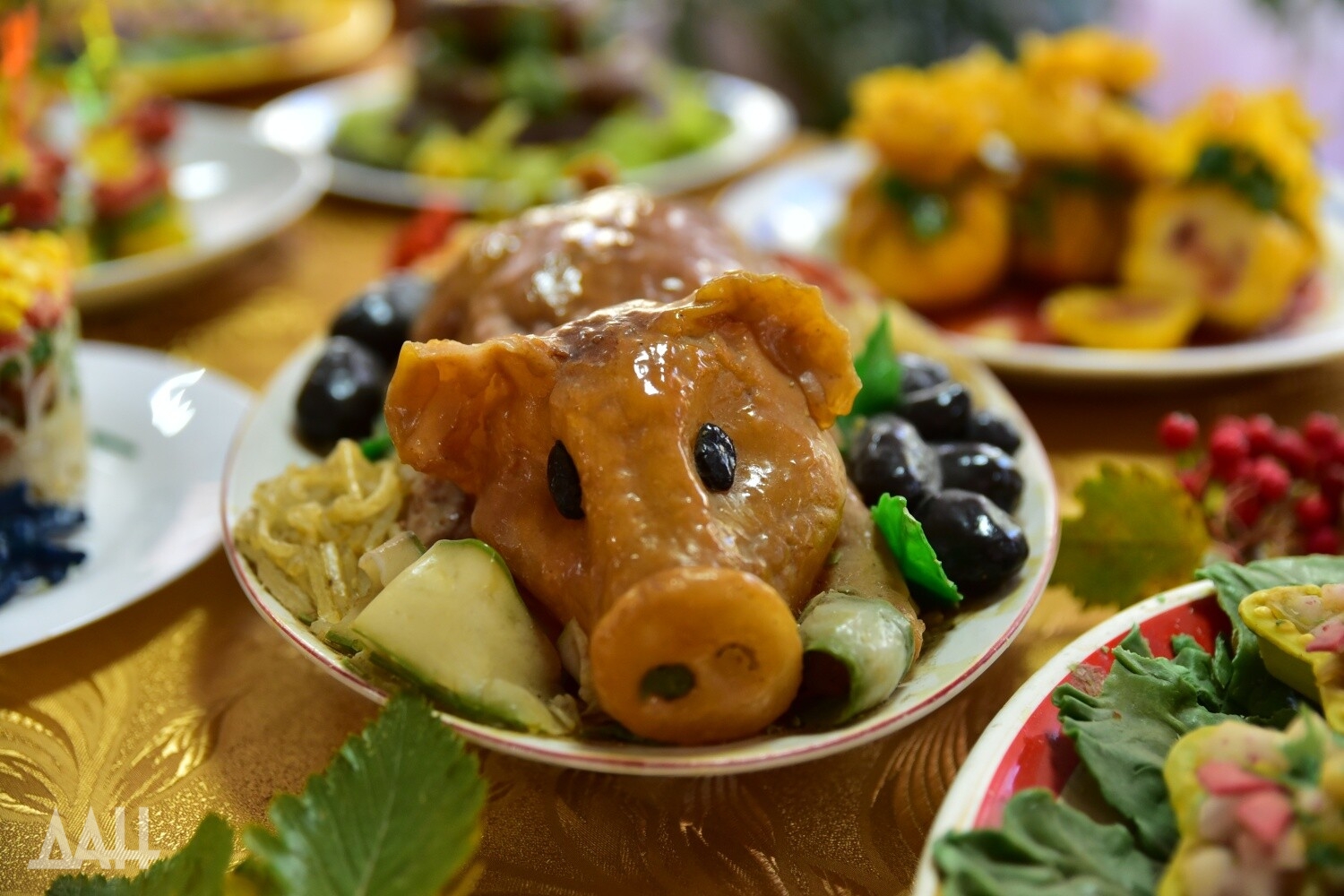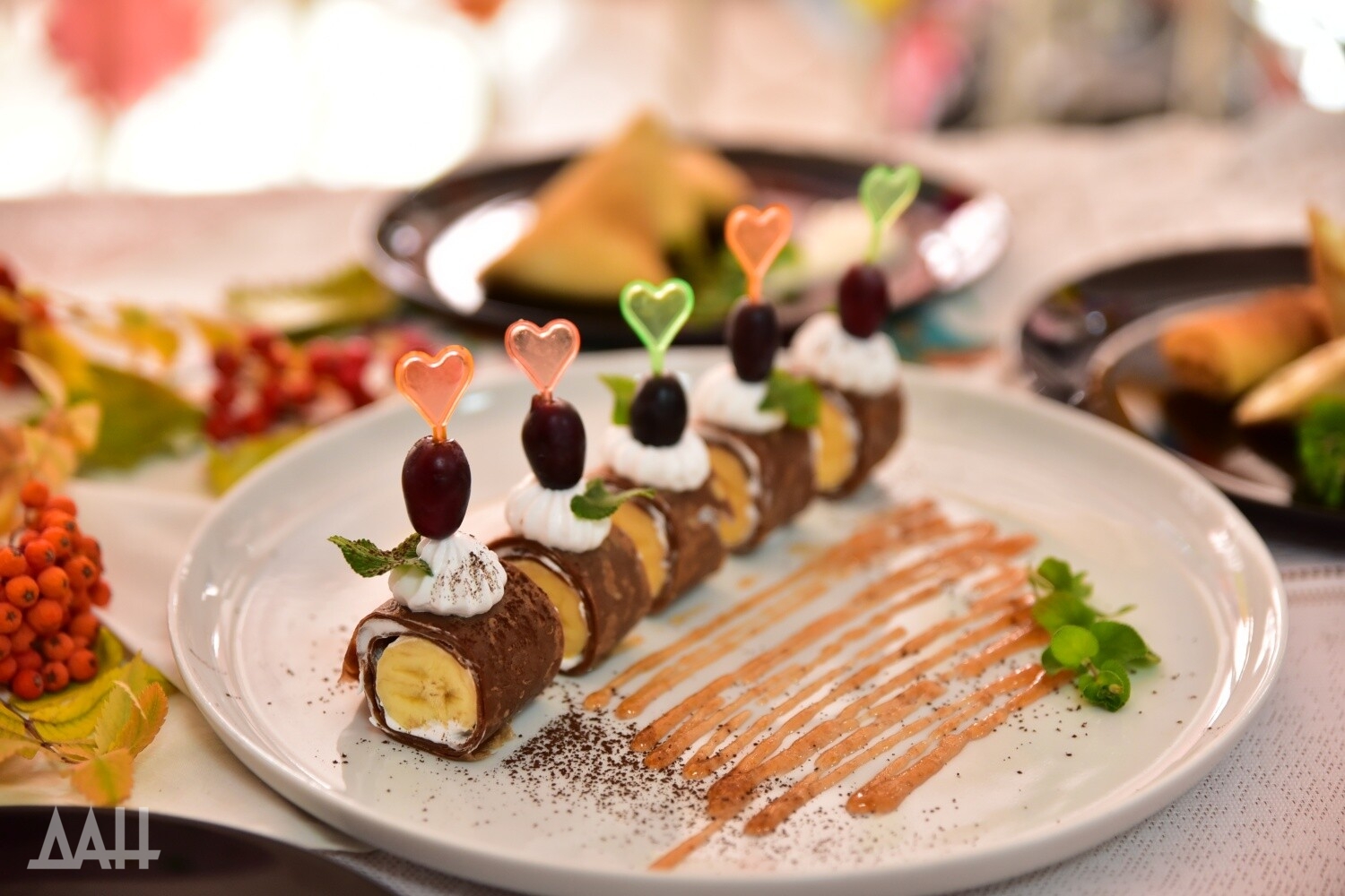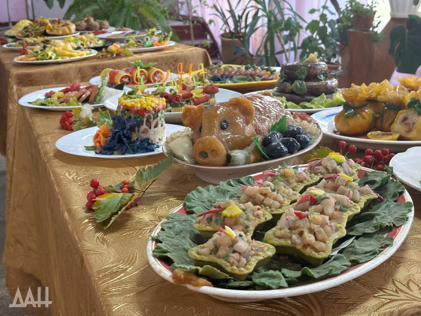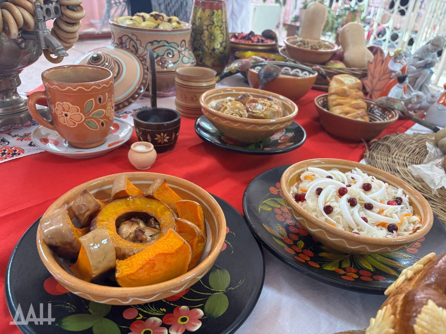 Столы ломятся от яств — это выражение идеально описывает атмосферу фестиваля. Преподаватели и мастера техникума не только продемонстрировали богатство русской кухни, но и удивили гостей креативностью. Один из столов был целиком посвящен блюдам из блинов: танцующие балерины, мешочки со шпинатом и мясом и даже имитация японских роллов.