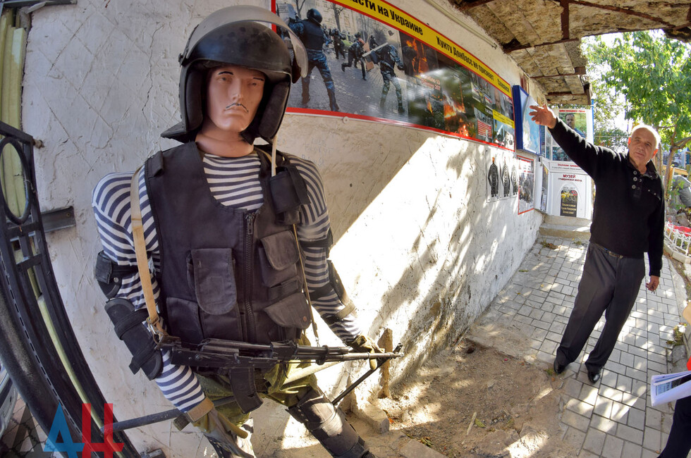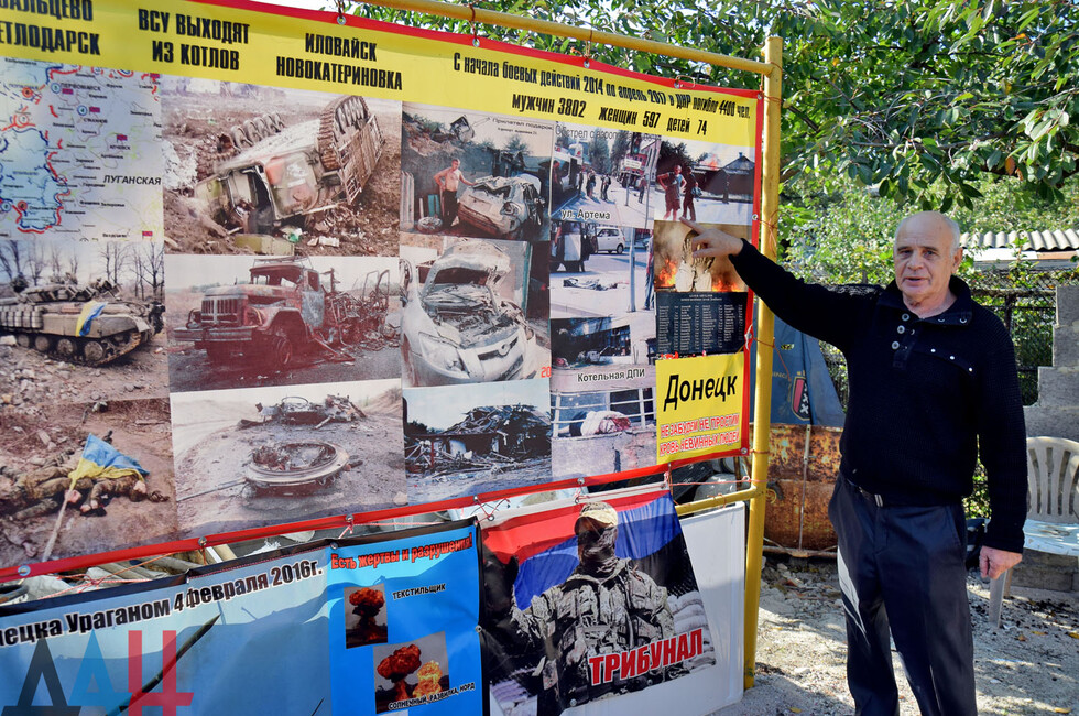 Часть экспозиции отведено под фотовыставку, снимки для которой пенсионер делал самостоятельно. Здесь отображены события весны 2014 года – со дня захвата украинской армией столичного аэропорта вплоть до января 2015 года – дня освобождения воздушной гавани. На кадрах - погибшие мирные жители и разрушенные после обстрелов здания.