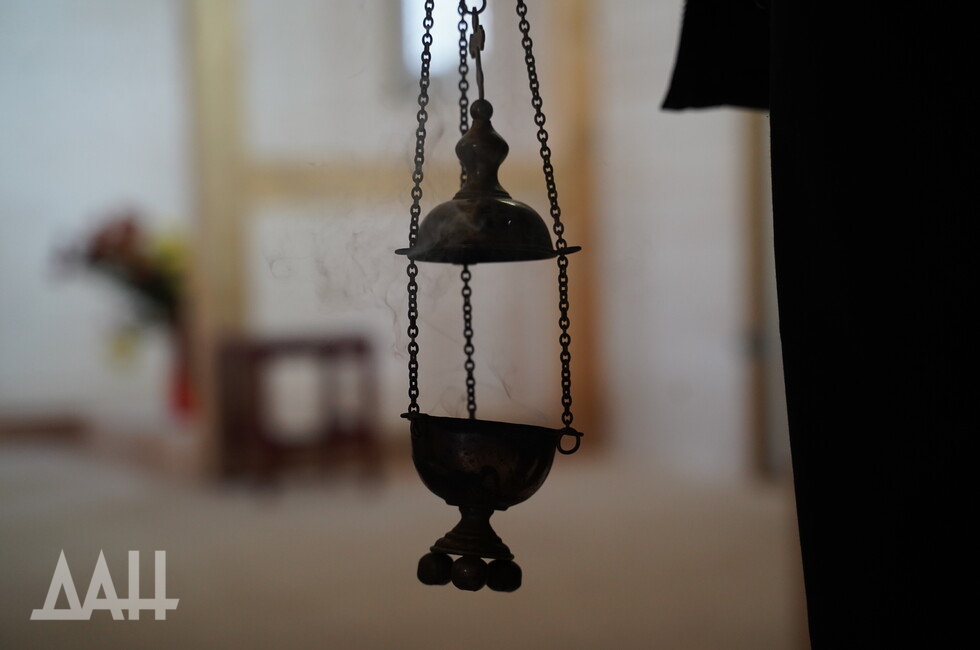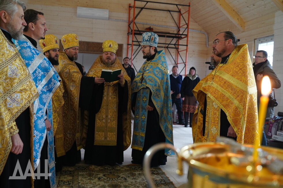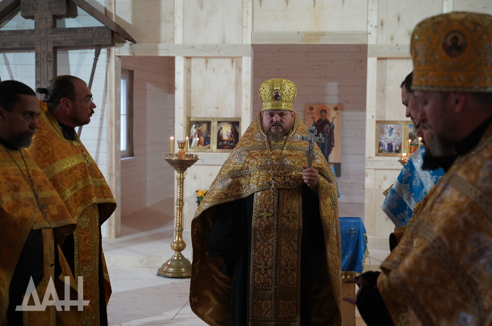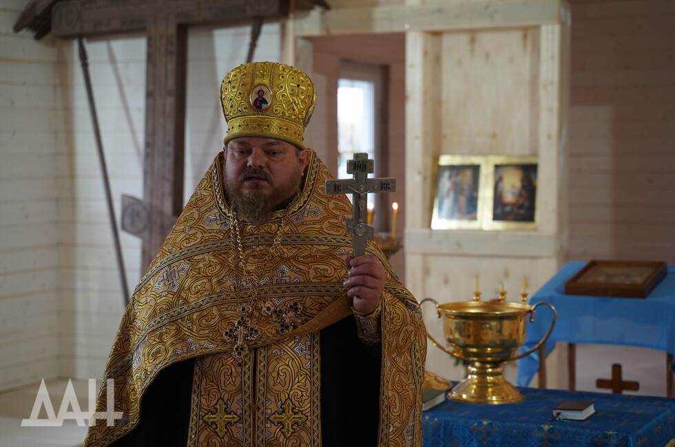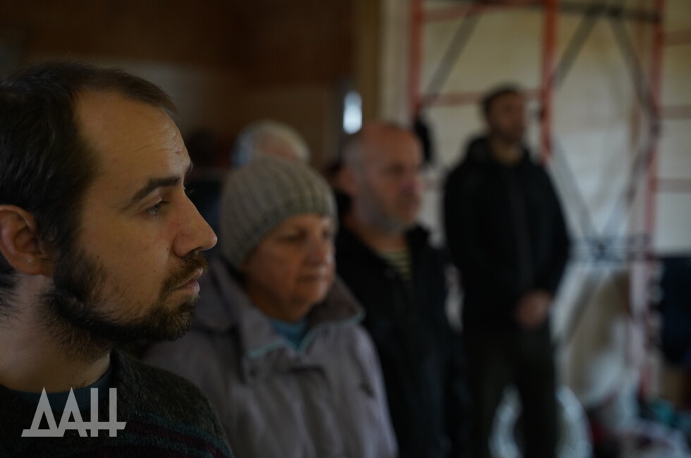 «Когда проходили боевые действия на „Азовстали“, я одел подрясный крест и вышел на позиции русской армии, мне выделили БТР и 30 минут времени. Меня привезли сюда, я увидел оскверненный алтарь, иконы… сердце кровью обливалось. Я спас некоторые иконы, что смог унести, — рассказал в ходе богослужения наставник храма иерей Валерий. — Теперь наш храм — это символ нашего города, он, как и город, был разрушен и восстанавливается».