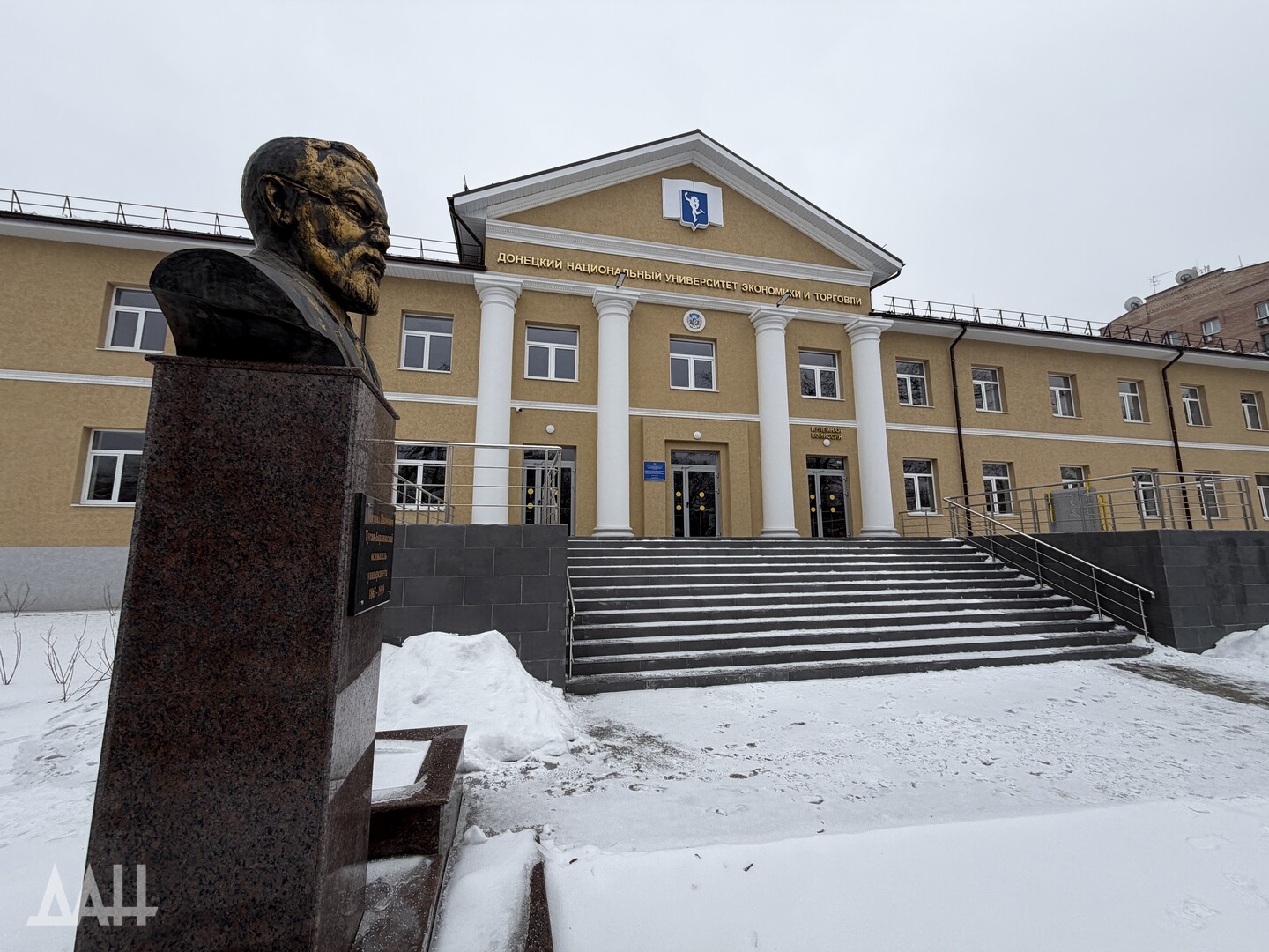 В августе 2023 года главное здание вуза сильно пострадало в результате обстрела ВСУ. Произошел сильнейший пожар, в результате которого выгорело полностью кровля и второй этаж. Портрет основателя вуза, к счастью, остался практически невредим. В корпусе общей площадью порядка 4,5 тыс. кв. метров специалисты под контролем «Единого заказчика» восстановили учебные аудитории, административные помещения и пространство музея для сотрудников и студентов вуза. Как сегодня выглядят восстановленные аудитории, увидел корреспондент Донецкого агентства новостей.