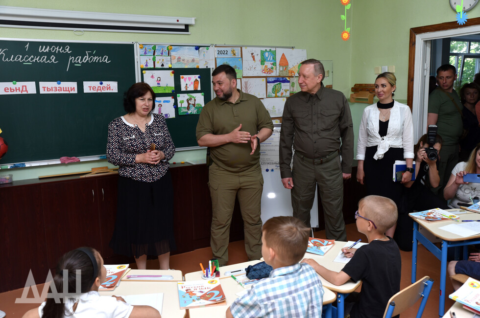 Губернатору также показали школу № 53, которая первой открылась в городе после завершения активной фазы спецоперации: провели экскурсию по учебным классам, столовой и спортзалу. Гости также побывали на уроках, пообщались с учениками и педагогами. Беглов передал школе учебники, ноутбуки, планшеты и канцтовары.