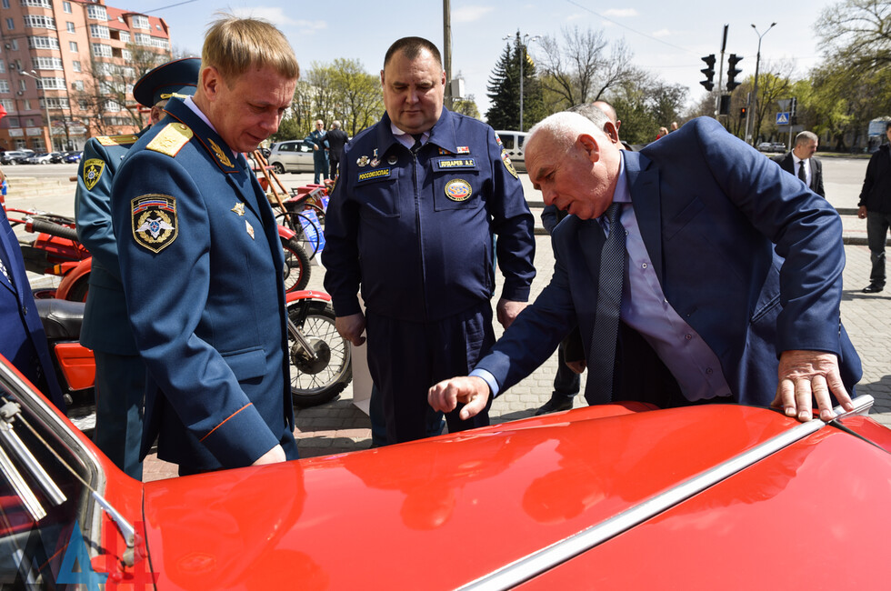 В честь праздника перед дворцом культуры открылась выставка раритетной техники. Посетители могли сесть в салон и заглянуть под капот оперативно-служебного автомобиля на базе «Москвича» 400/420, который в 50-60-е годы прошлого века был оборудован для пожарных, познакомиться с техникой XVIII - ХХ вв. - пожарным велосипедом или конно-бочечным ходом, мотоциклом «Спрут-1» и пр. В холле ДК экспонировались фотографии из истории пожарных Донбасса за последние полтора века. Завершились торжества концертом.