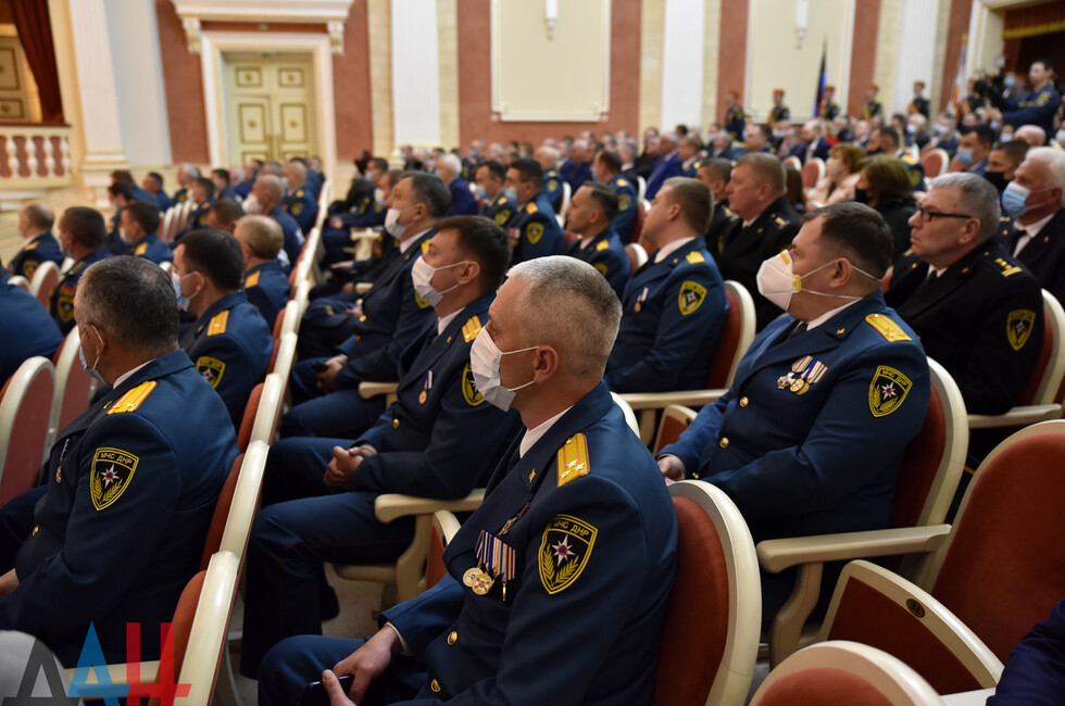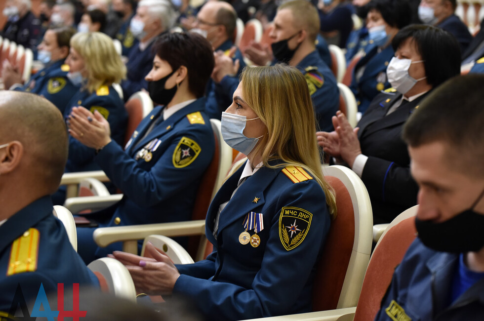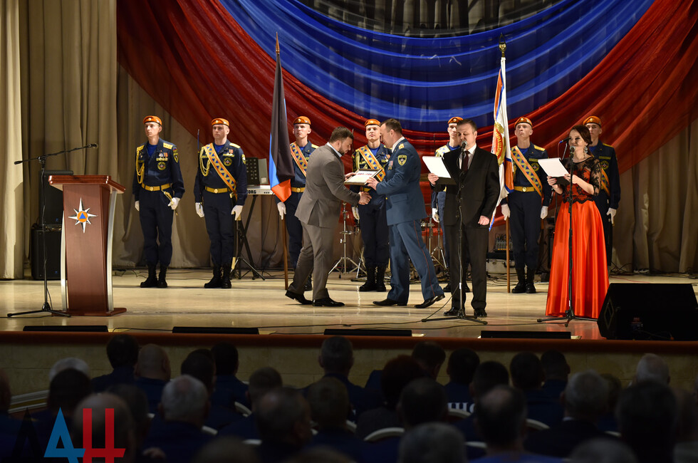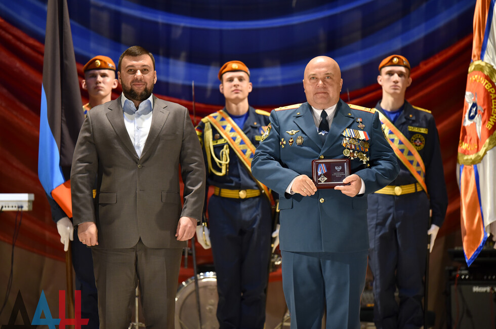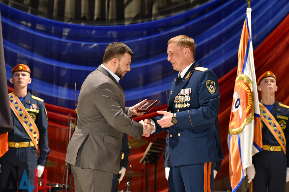Донецк, 30 апр – корр. ДАН. Глава ДНР Денис Пушилин вручил государственные награды сотрудникам МЧС по случаю Дня пожарной охраны и юбилея пожарной службы Донбасса. Торжественная церемония прошла сегодня в донецком дворце культуры им. Куйбышева.