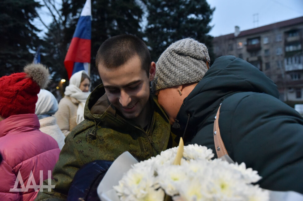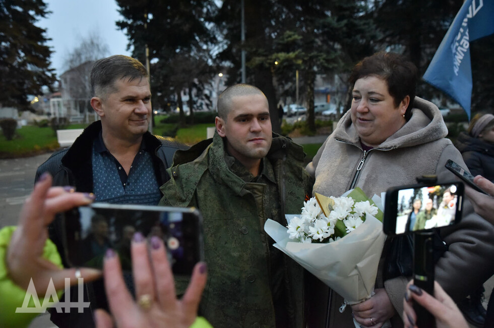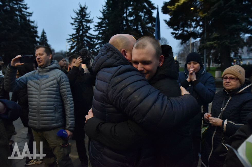 Уже в ДНР освобожденных встречали цветами их семьи, местные жители, представители общественной организации «Молодая Республика» и общественного движения «Донецкая Республика».