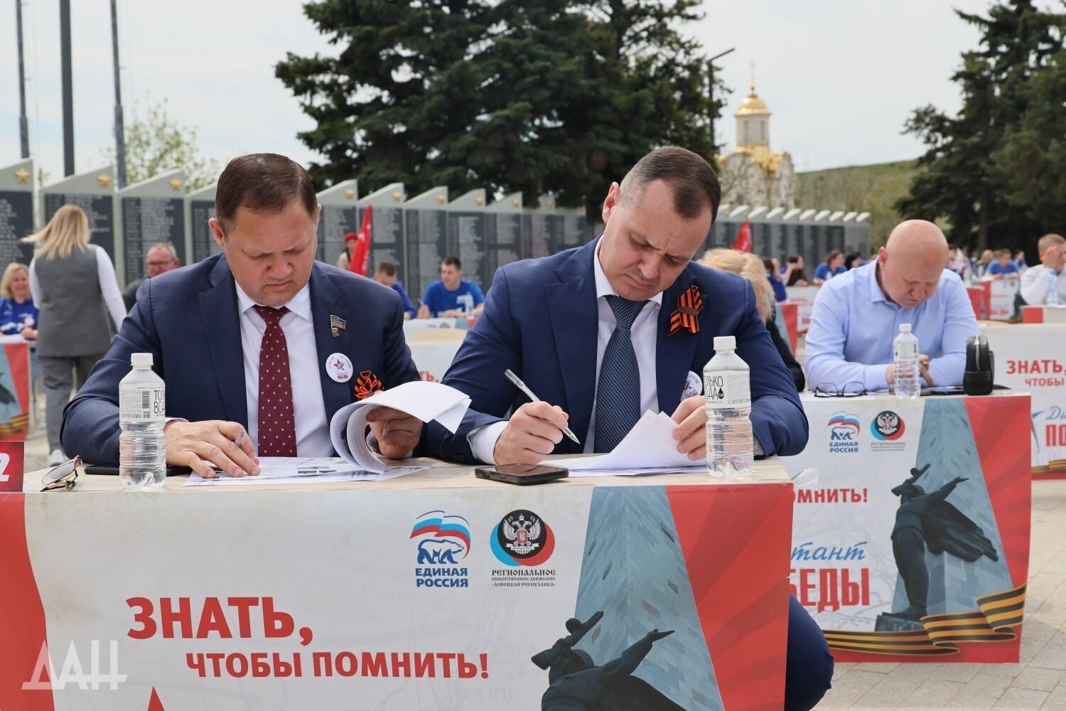 Всего на Саур-Могиле знания об истории Великой Отечественной войны проверили порядка 200 участников, это активисты «Единой России», депутаты Народного и местных советов, представители Росгвардии и «Молодой Гвардии Единой России». Также в рамках акции на кургане развернули огромную Георгиевскую ленту.