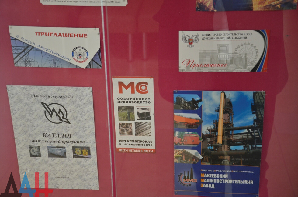 На стендах - фотографии шахтеров, энергетиков, металлургов, зафиксированы основные события в экономической жизни ДНР, в их числе и фото с запуска Юзовского металлургического завода. Помимо этого, представлены снимки, отображающие становление в Республике общественных движений, а также развитие культурных, спортивных и научных сфер.