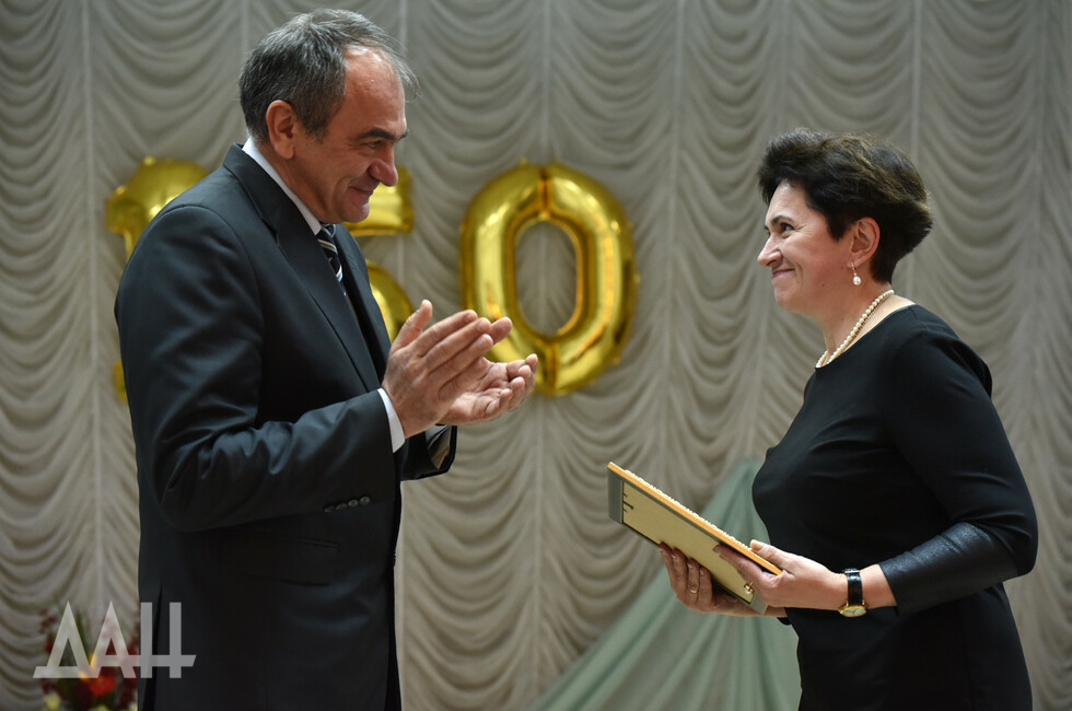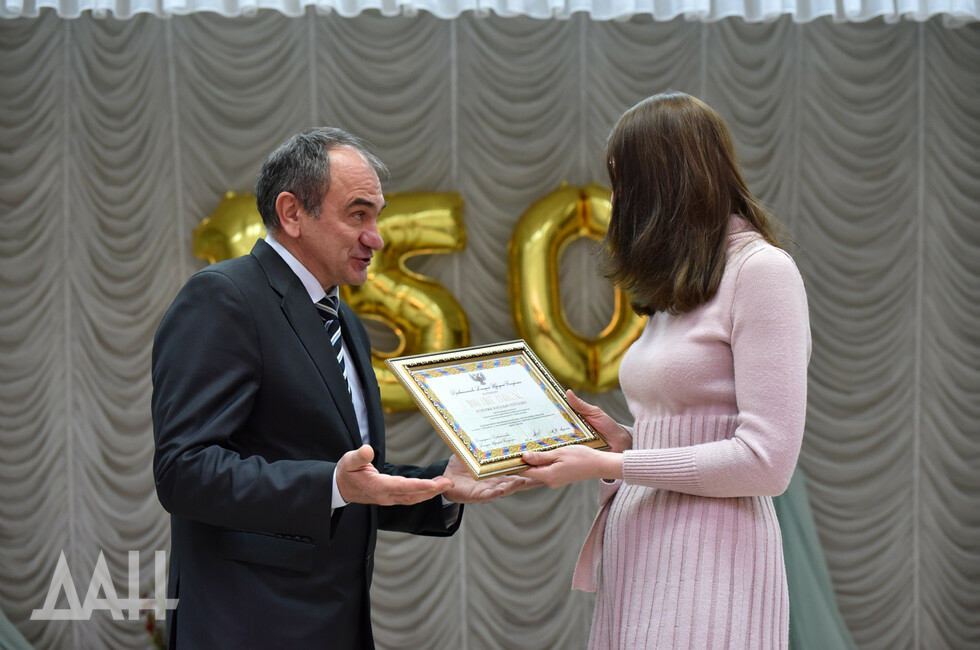 Церемония прошла в Доме техники Донецкого металлургического завода. Там собрались сотрудники различных подразделений больницы. Им вручили Благодарности Главы ДНР и нагрудные знаки «Знак почета» III-й степени. Награду получила и главный врач больницы Галина Могилевская.