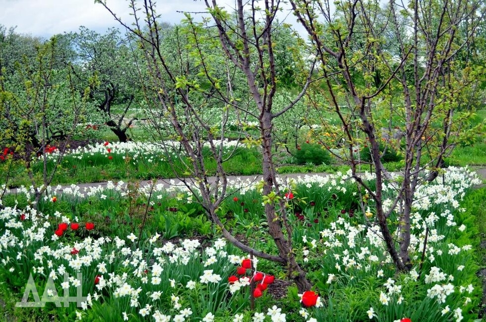 Она также добавила, что в ботсаду продолжается активное цветение тюльпанов, которое продлится еще несколько дней. Также расцвел редкий вид калины — калина карльса.