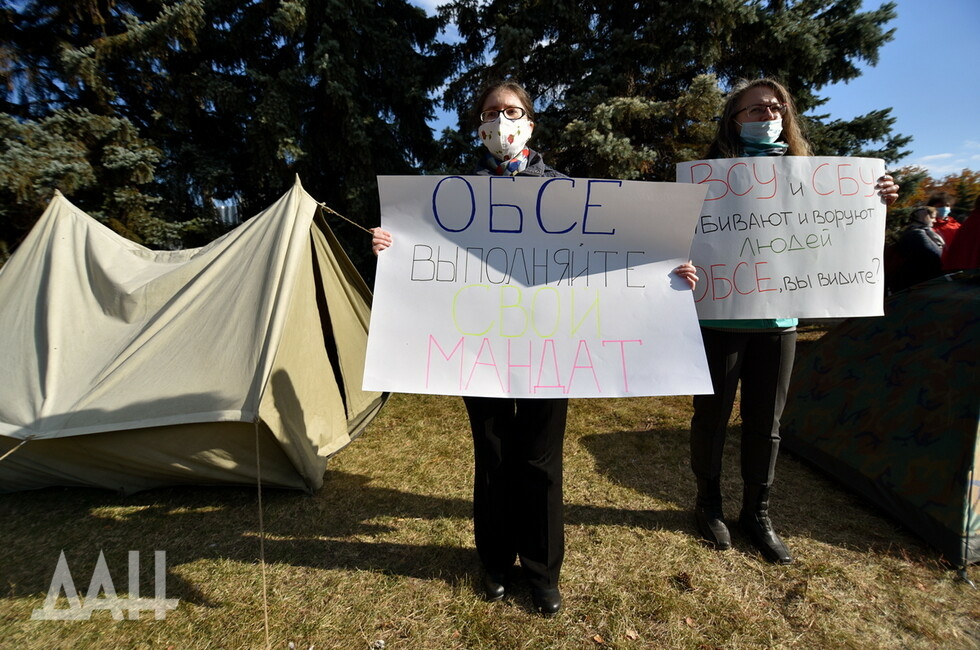 Вместе с тем акция протеста у штаб-квартиры ОБСЕ в Донецке продолжается четвертый день. Она началась 15 октября, в тот же день у Park Inn был обустроен палаточный городок. Выезды из отеля заблокированы. Поводом для протестов послужило пленение 13 октября украинскими силовиками наблюдателя представительства ЛНР в СЦКК Андрея Косяка. Как отмечают демонстранты, в ОБСЕ самоустранились от оценки этого инцидента, поставив под угрозу всю систему взаимодействия сторон конфликта и, как следствие, ситуацию с безопасностью в регионе.