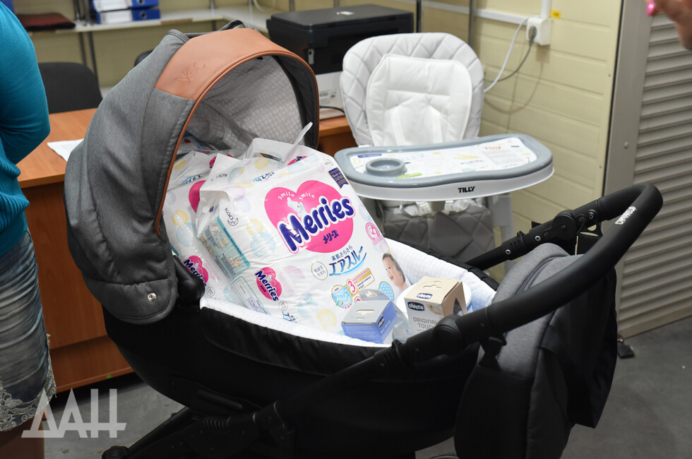 Он также передал семье коляску и различные детские принадлежности.