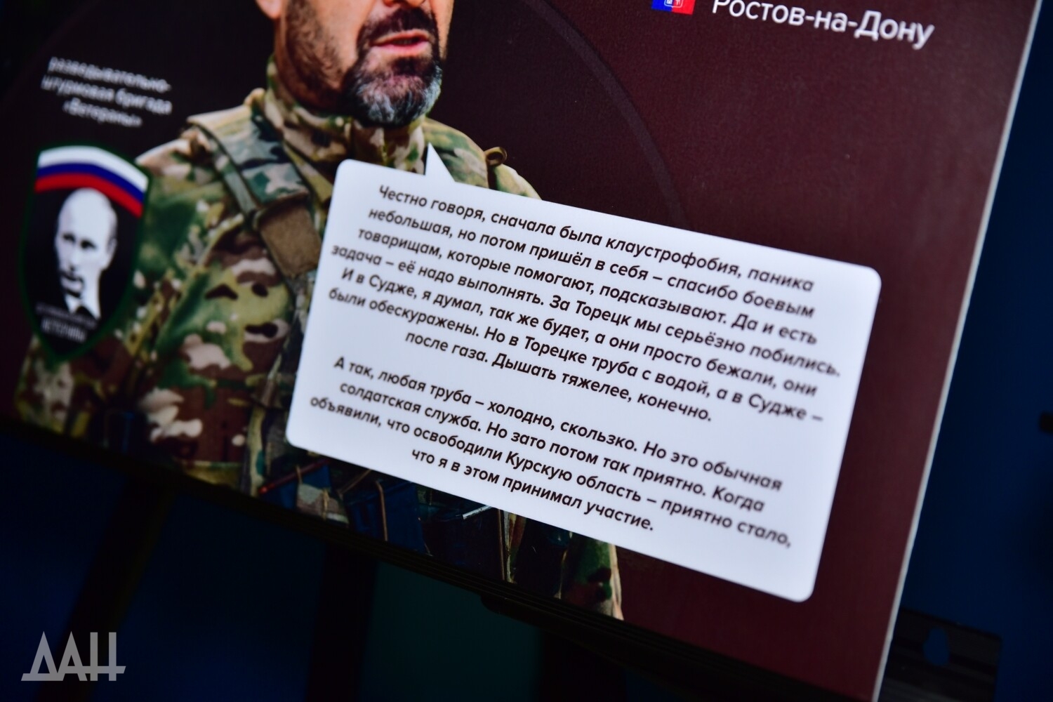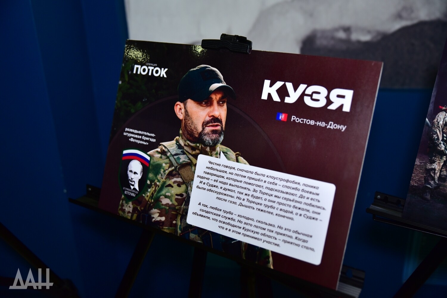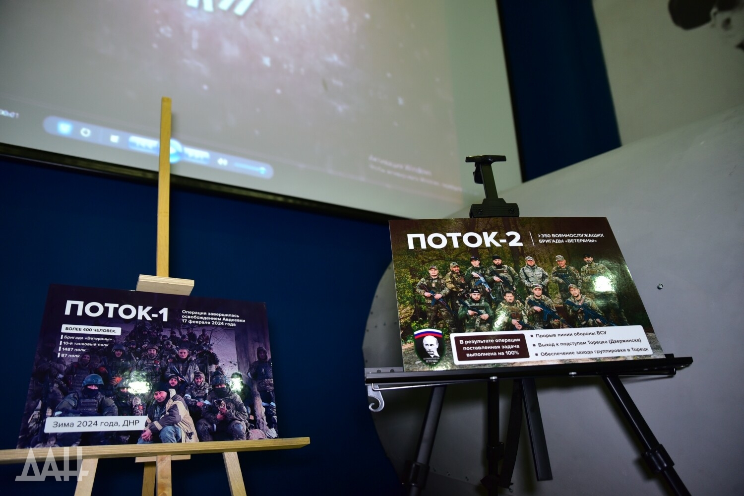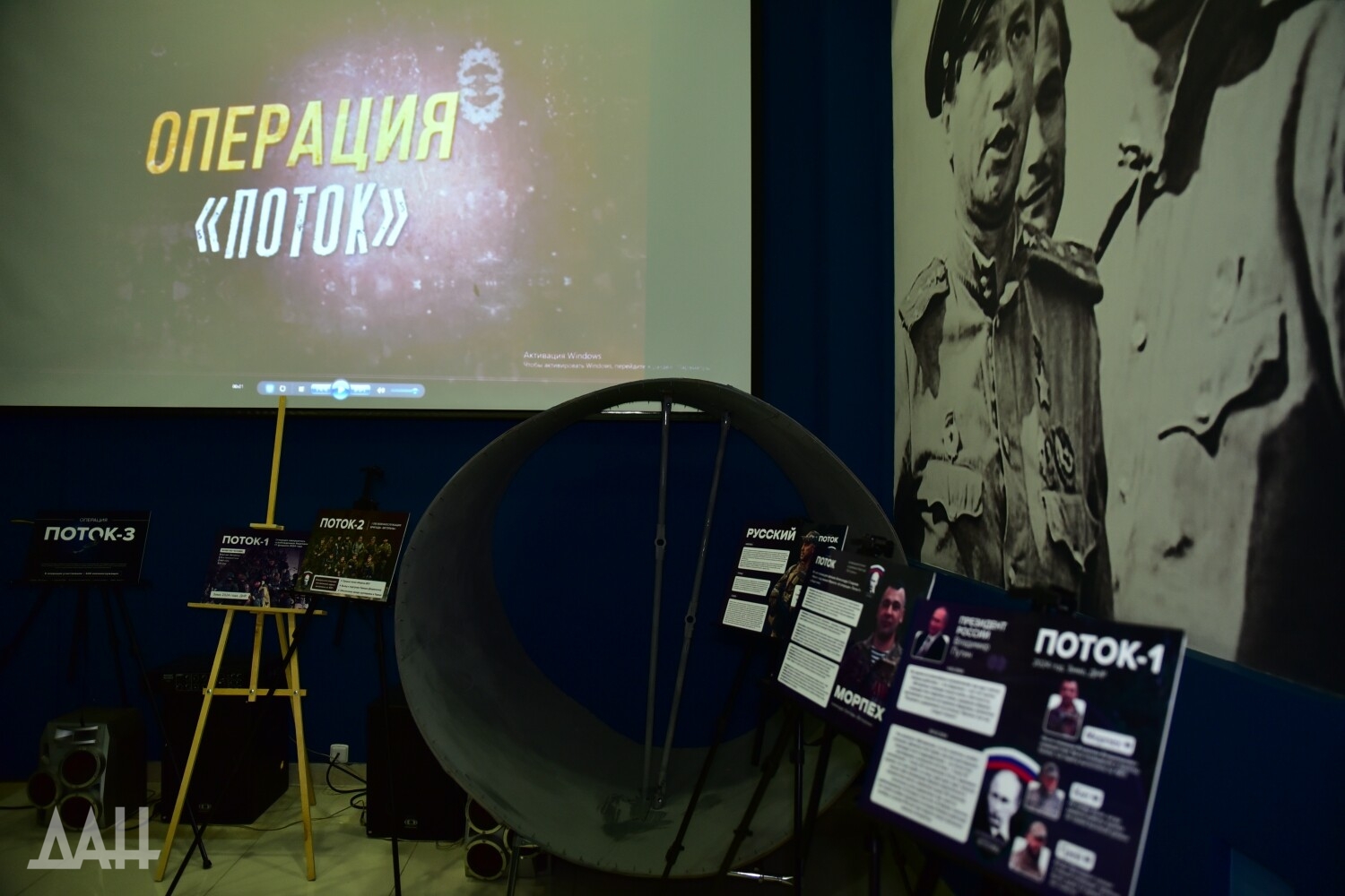 Тридцать четыре планшета с фотографиями военнослужащих, прошедших под землей в трубах, где нельзя было ни разогнуться, ни отдохнуть, а путь занимал по несколько дней, истории о трудностях, подготовке операций и разгромной победе над врагом. Увидеть все это можно в Донецком музее Великой Отечественной войны. На открытии выставки присутствовали и сами военнослужащие, бойцы бригады «Ветераны», которые стояли за организацией и проведением трех «Потоков».
