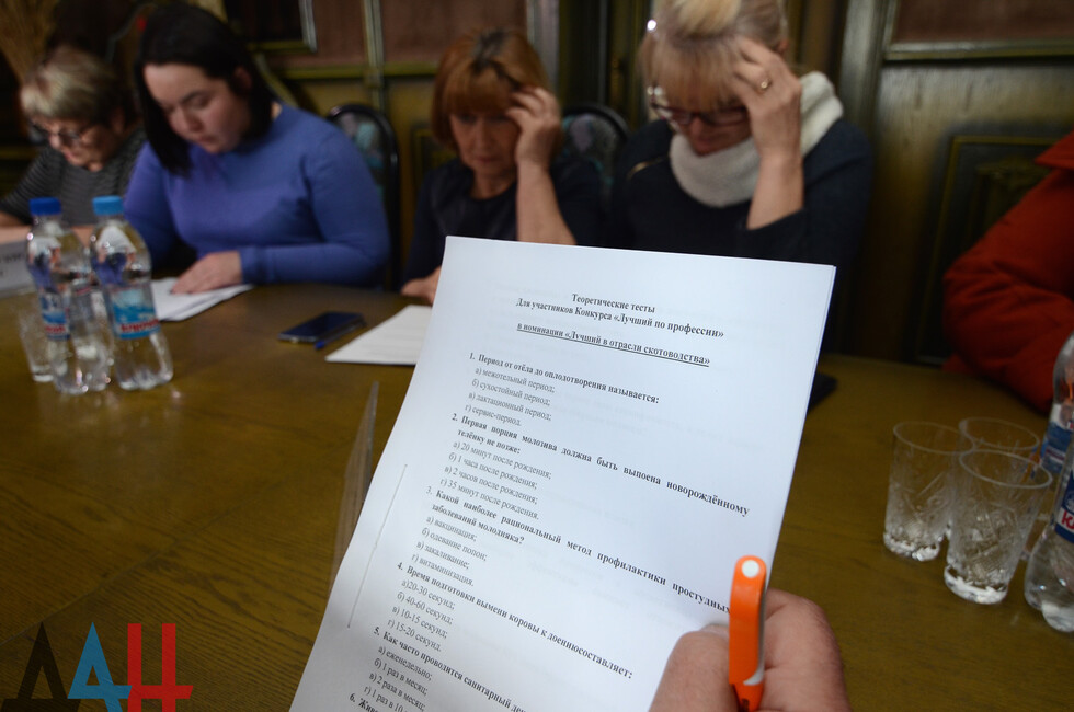 Розовка (Шахтерский район), 31 окт – корр. ДАН. Фермеры Донецка и Новоазовска получили наивысшие баллы в тестировании знаний в области скотоводства и свиноводства на конкурсе «Лучший по профессии». Мероприятие приурочено ко Дню работника сельского хозяйства и перерабатывающей промышленности ДНР.