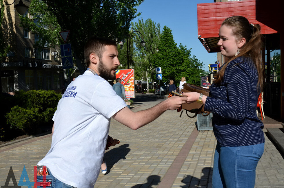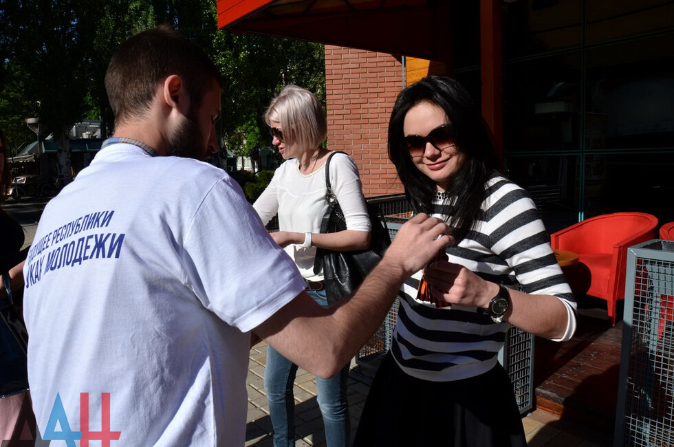 Донецк, 6 май – ДАН. Активисты общественной организации «Молодая Республика» сегодня во время проведения автопробега в поддержку патриотической акции «Бессмертный полк» раздали дончанам тысячу георгиевских лент. Об этом сегодня ДАН сообщили в пресс-службе ОО «МР».