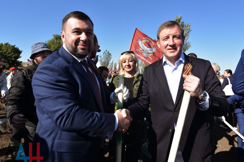 В закладке аллеи участвовали Глава ДНР Денис Пушилин, президент РЮО Анатолий Бибилов, первый зампредседателя Совета Федерации РФ, секретарь генсовета партии «Единая Россия» Андрей Турчак, лидер международного клуба «Ночные волки» Александр Залдостанов (Хирург) и другие почетные гости.