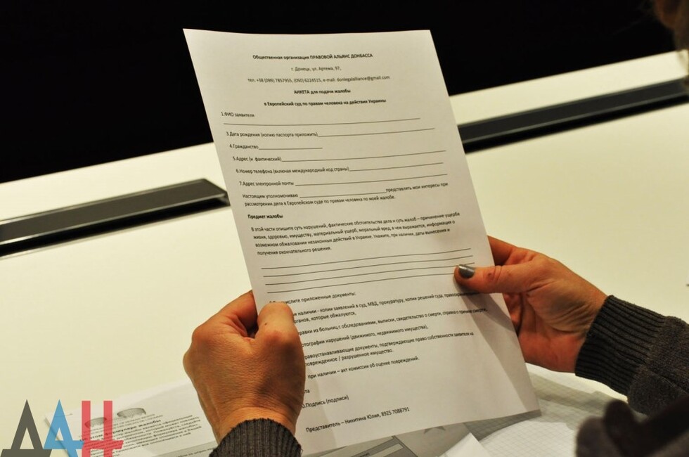 Донецк, 7 окт - ДАН. Аппарат Уполномоченного по правам человека ДНР совместно с общественниками направил в Европейский суд по правам человека (ЕСПЧ) 144 заявления пострадавших от действий ВСУ жителей Республики. Об этом сегодня журналистам сообщил представитель аппарата Димитрий Попов.