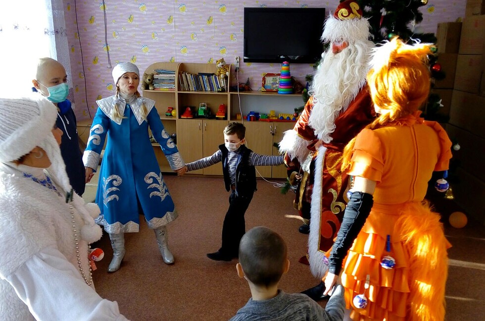 Всего на лечении в гематологическом центре находится 30 малышей. 16 из них смогли отправиться на Новый год домой. 14 по медицинском показаниям остались в центре - именно для них и было организовано маленькое костюмированное представление с участием сказочных персонажей: тетушки Зимы, хитрой Лисы, Деда Мороза и Снегурочки.