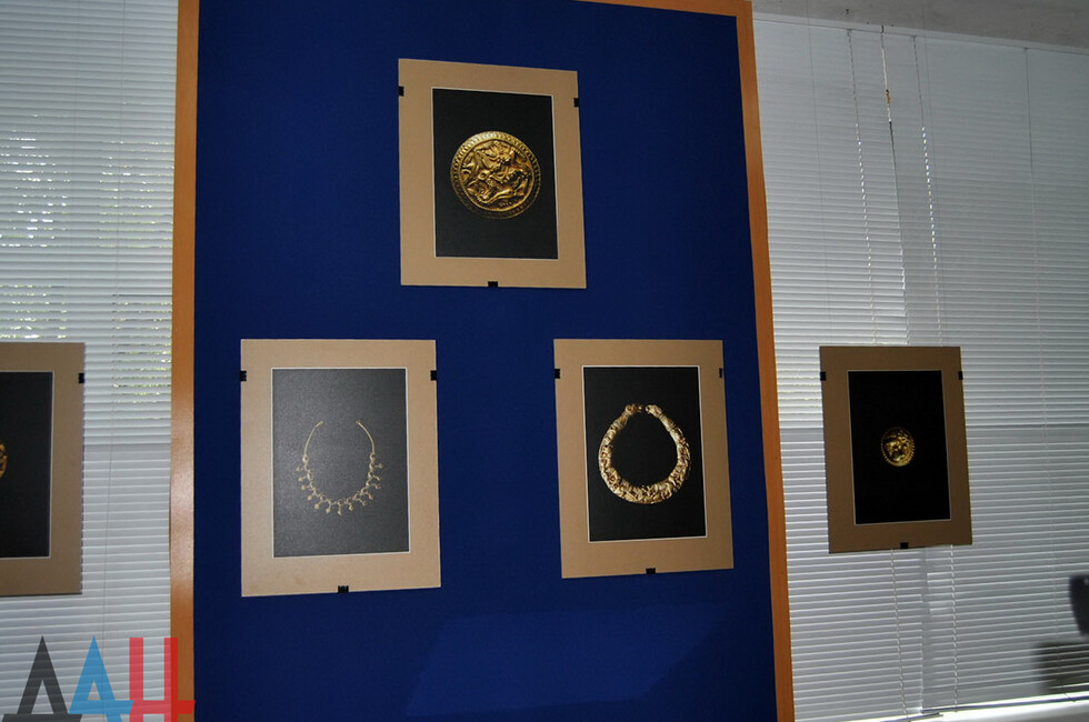 На всеобщем обозрении: знак вожака гривна – пектораль, пряжка, она же тайник, символ рода, женский кулан. По информации организаторов, оригиналы изделий создавались из золота и серебра и являются бесценными. В Донецке экспонируются их реплики – точные копии, но это не снижает интереса к духовным памятникам, памятникам мастерства, истории и культуры сарматов. В числе артефактов также найденные в степных захоронениях шлем воина-сармата, сабля, ритуальная посуда, уникальные образцы искусства.