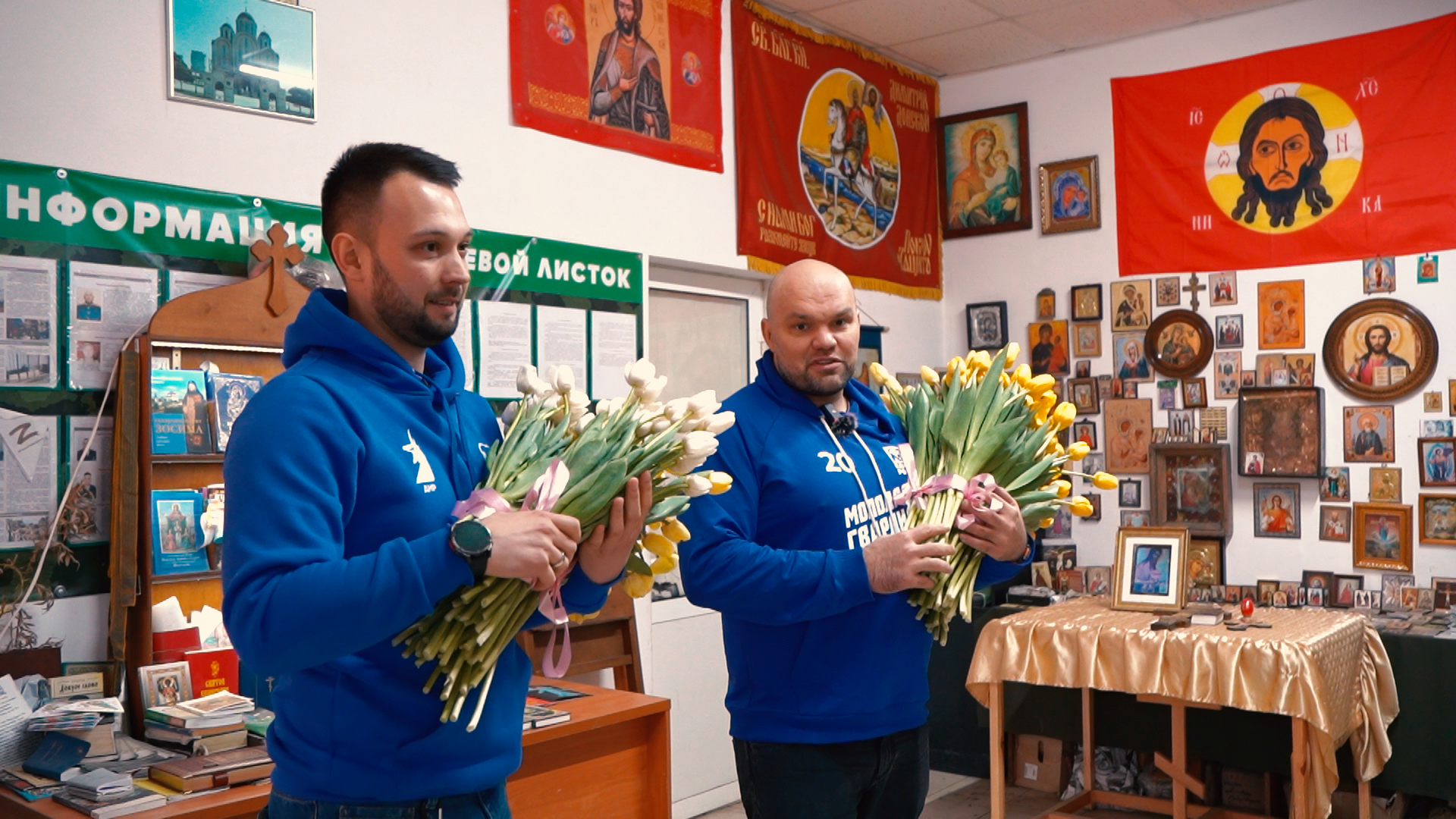 Накануне праздника волонтеры вместе с председателем «Молодой Гвардии Единой России» Антоном Демидовым побывали в Горловке, Авдеевке и воинских частях. В администрации Горловки они вручили букеты и фруктовые наборы вдовам погибших участников СВО. В авдеевском пункте временного размещения такие же подарки получили женщины, эвакуированные с освобожденных территорий. Также активисты навестили и поздравили девушек, служащих в «Дикой Дивизии Донбасса».
