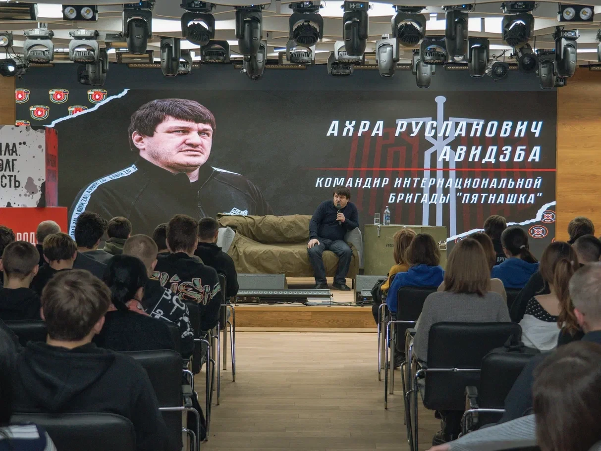 На мероприятии собралось три сотни молодых активистов из различных объединений ДНР. Центральным элементом программы стала встреча с командиром интернациональной бригады «Пятнашка» Ахрой Авидзбой, который лично участвовал в тех знаменательных событиях.
