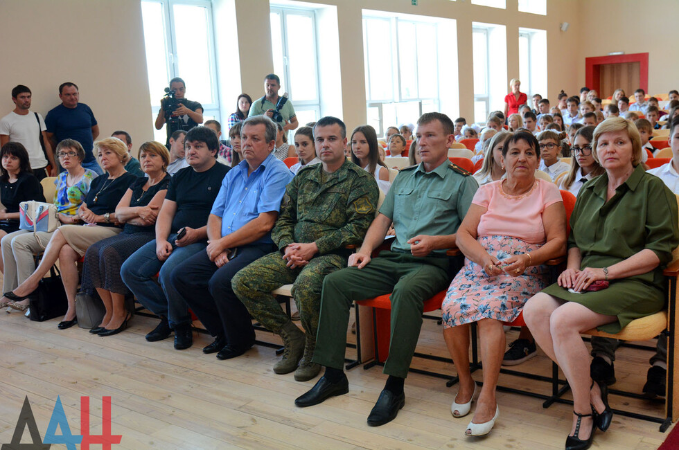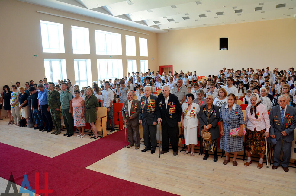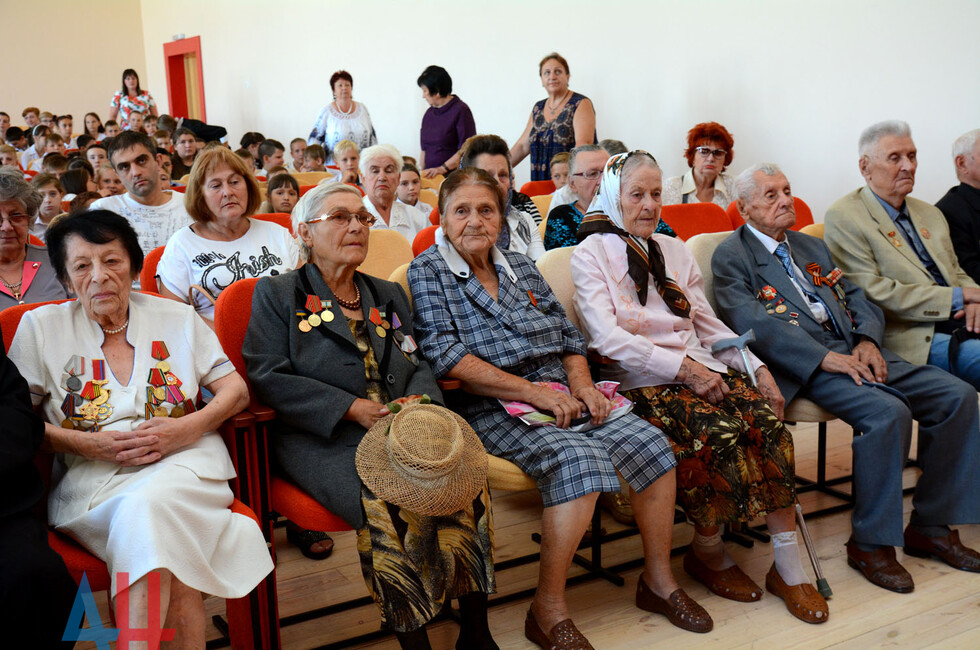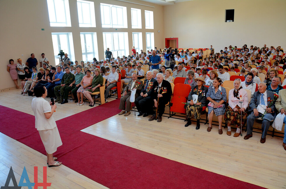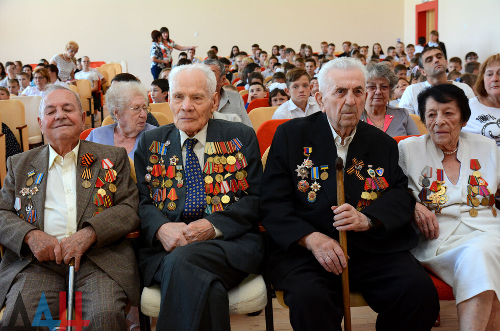 В зале присутствовали ветераны Великой Отечественной войны, освободители Донбасса, руководство школы, педагоги и учащиеся.